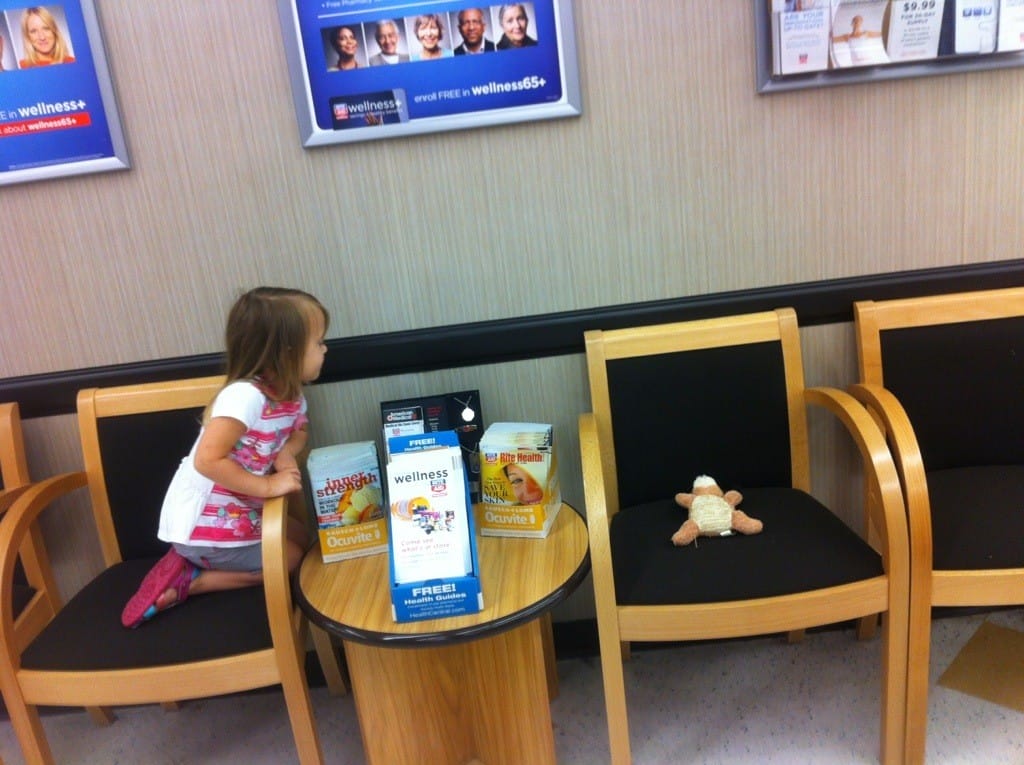 Another antibiotic, another trip to Rite Aid. Baby Pup and I each got our own seat while we waited.