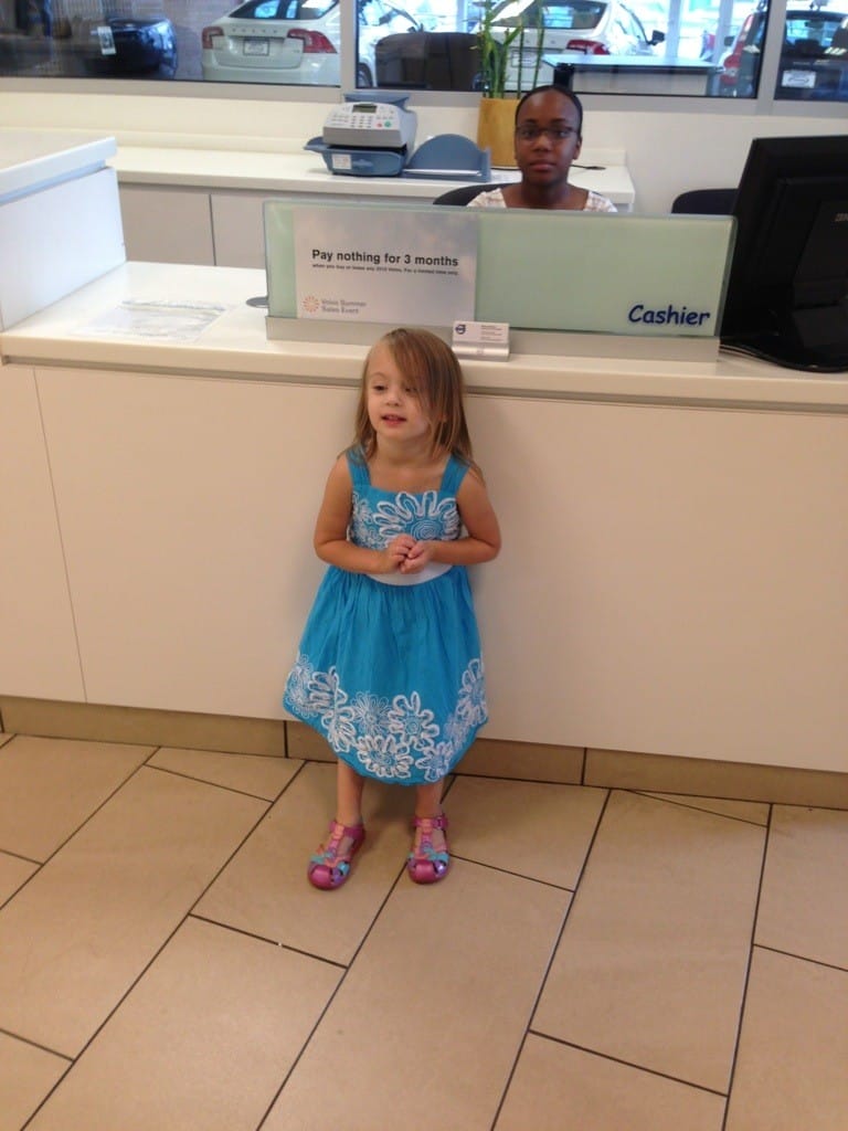 I was happy to get our car back, but I was kind of sad to turn in our loaner car. It was a 2013 XC60. That means nothing to me, but it was really comfy, and smelled good, and mommy REALLY liked driving it!