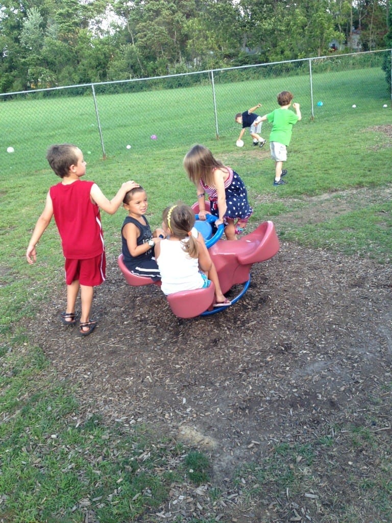 Mommy and daddy had some things to do today, so I was in school for my first full day. When they came to pick me up, I was playing outside with my friends. I was having so much fun, it took me a while to notice they were there.