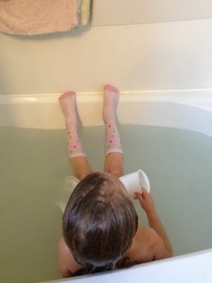 I was reluctant to get a bath this morning (I usually bathe at night), so mommy & daddy compromised – allowing me to keep my socks on in the tub.