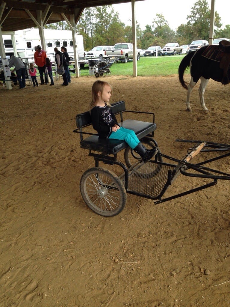 Then I wanted to ride a horse. I decided to ride in the cart instead. The pony’s name is Sugar Cookie.