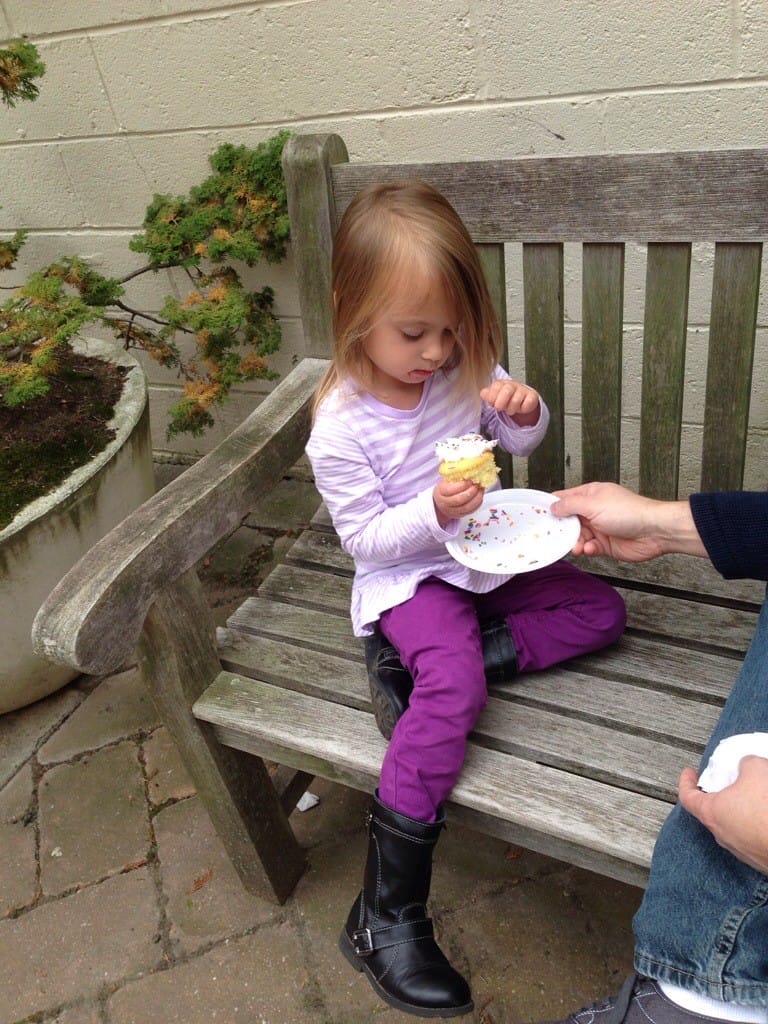 I decorated my own cupcake at Indulgence Cupcakery – all I wanted were sprinkles (the bakery was on Cupcake Wars. Mommy said we need to find the episode & watch it)