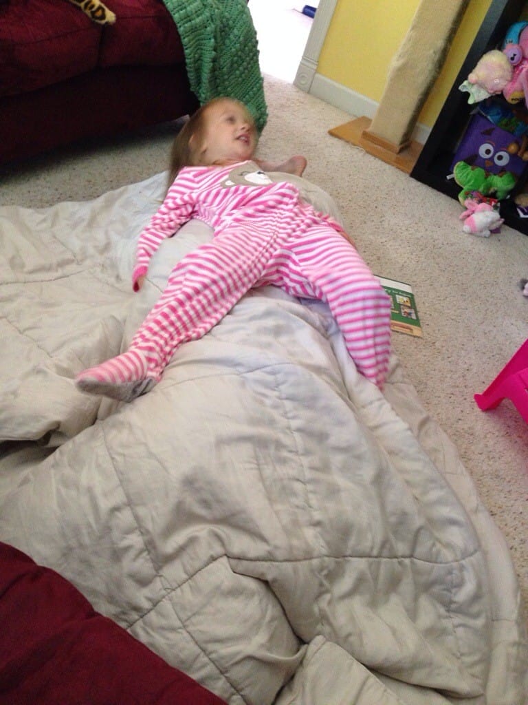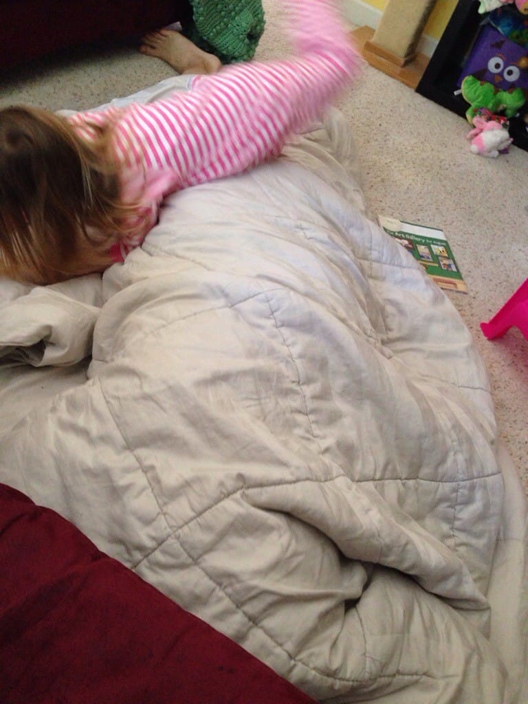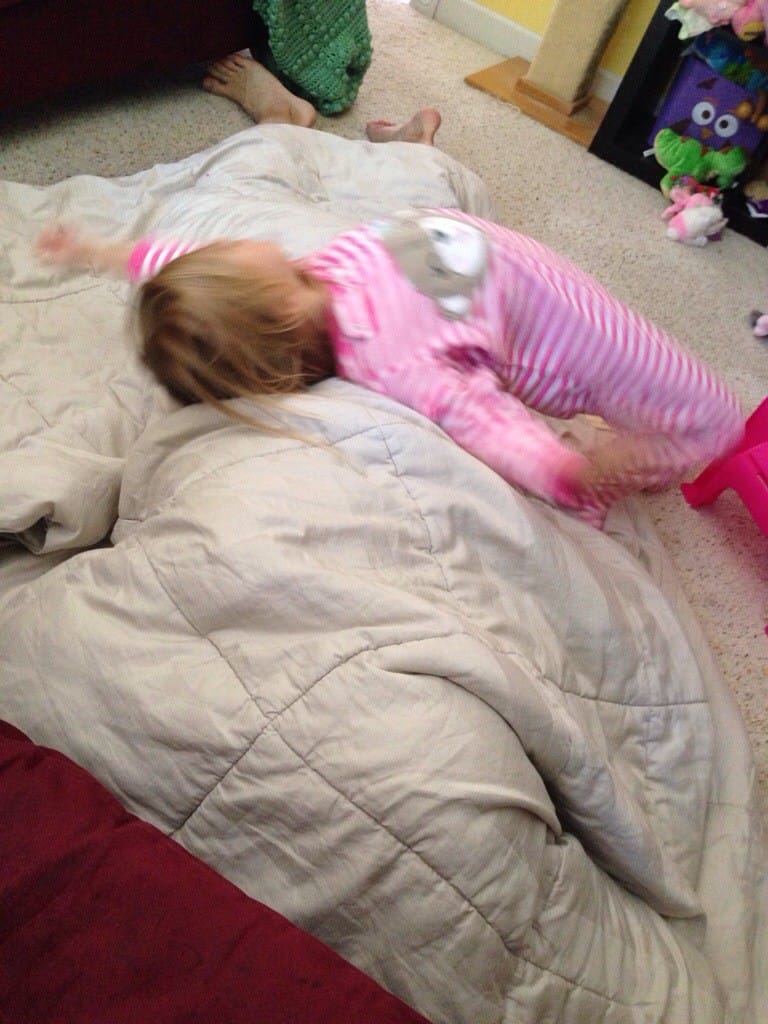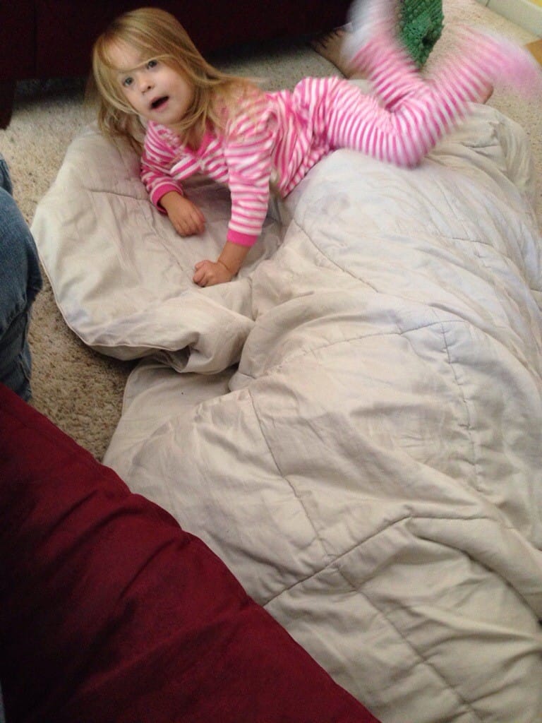 Daddy is the big lump under this blanket, and I’m having fun rolling all over him.