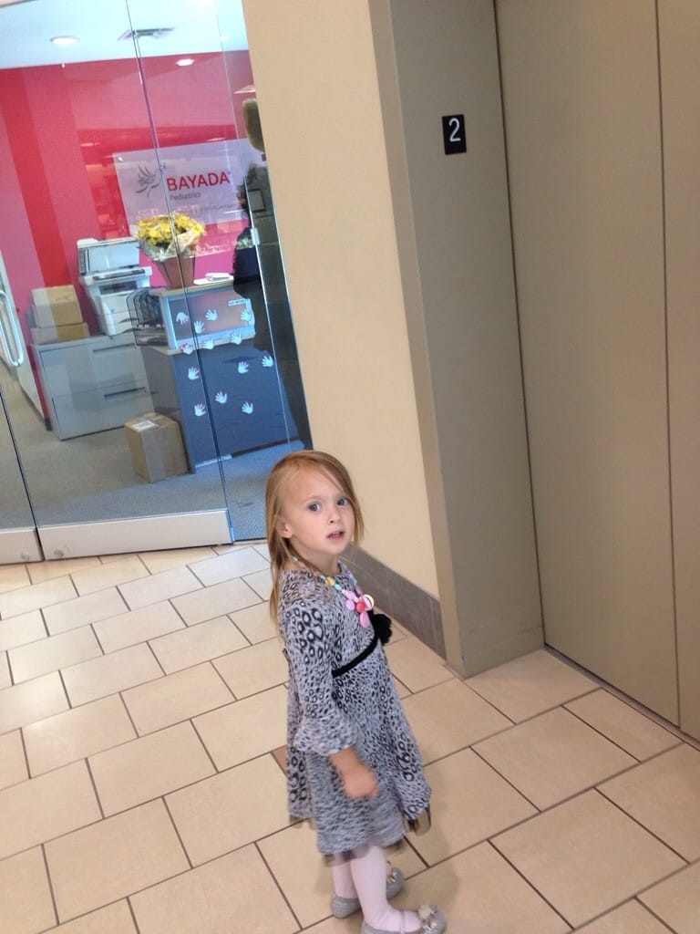 We’re at Voorhees Town Center, and I wanted to ride the elevator. I pushed the buttons and everything. But I’m less than pleased about mommy taking my picture.