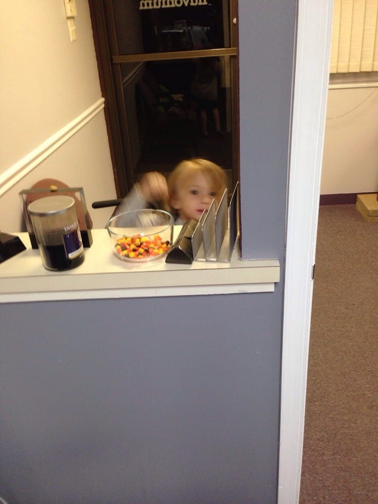 I’m addicted to the candy corns at daddy’s office. Mommy caught me with my hand in the candy dish. But it’s ok, because I offered to share with her.