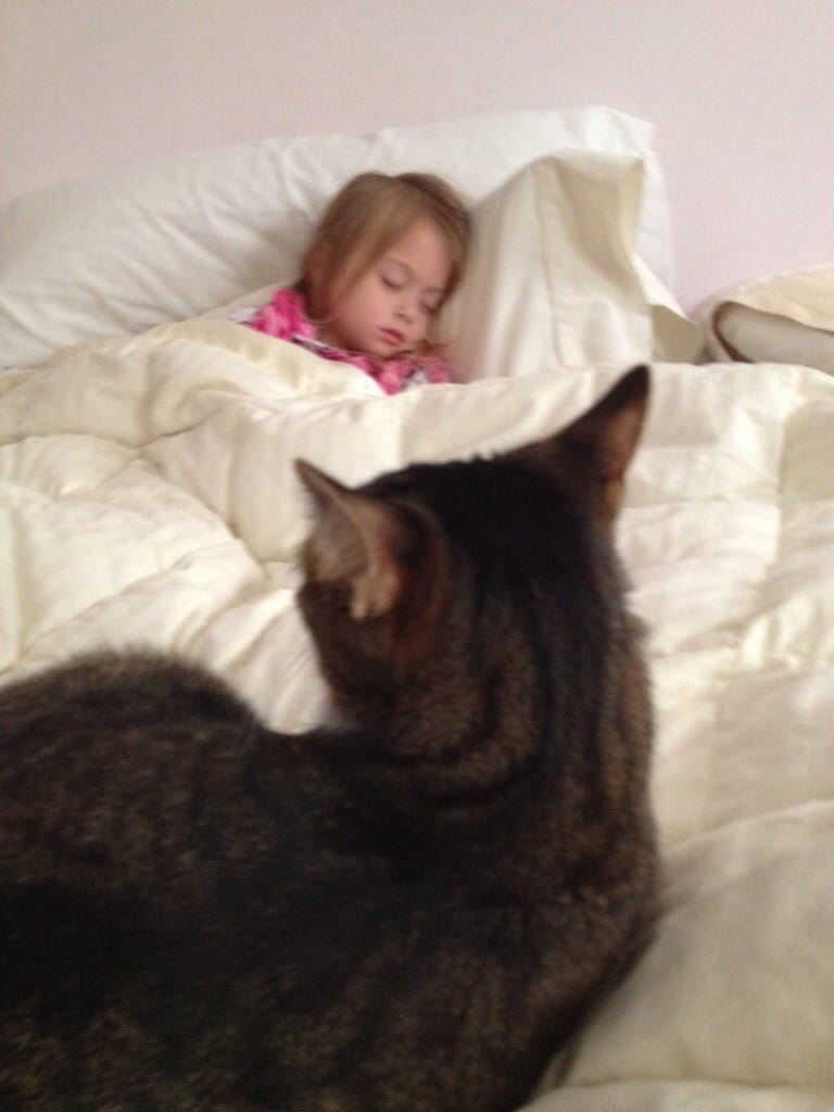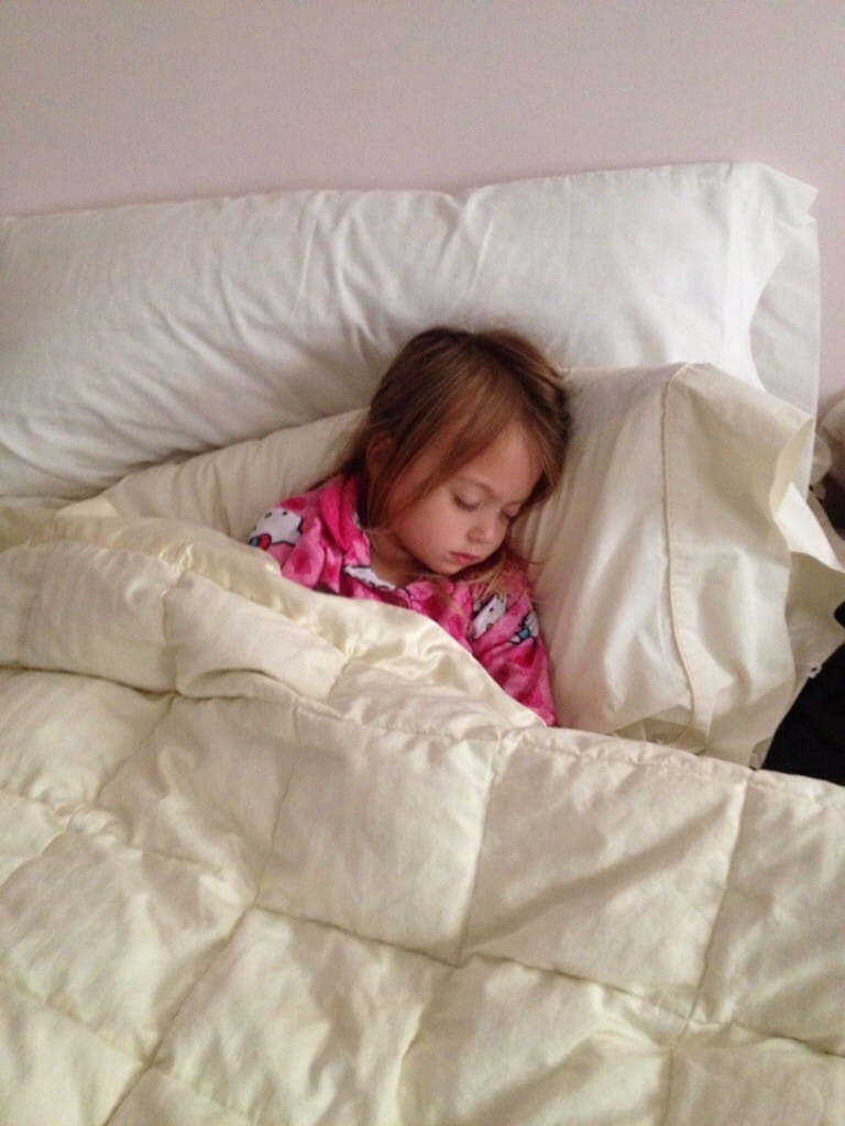 Not a terrific night of sleep. I woke up several times to wee wee or with “BOOGIES!” And now I’m still sleeping in dad’s spot in his bed. Am I getting sick again?