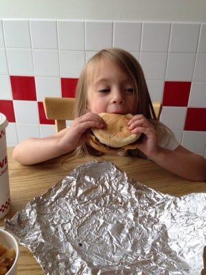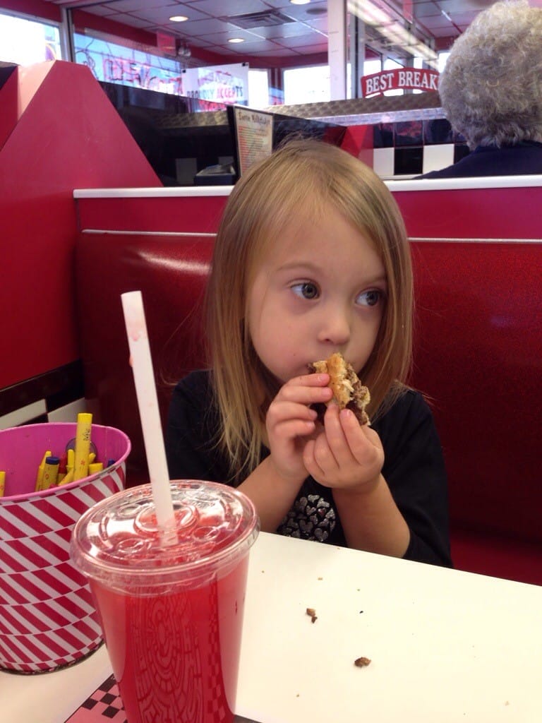 I was really hungry after my doctor’s appointment, so mommy got me a burger at Nifty Fifty’s. I ate the whole thing!