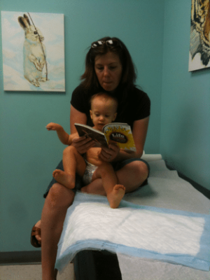 Sitting with mommy reading readers digest. Doctors are never on time.