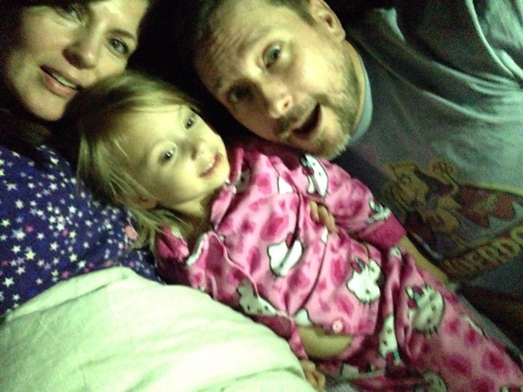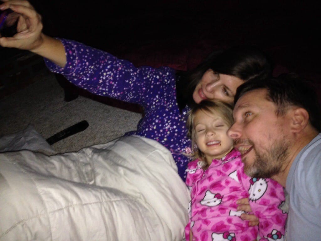 We had a carpet picnic with pizza, and now we’re eating popcorn and watching “Turbo” in our pajamas.