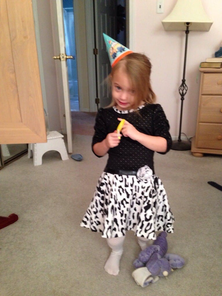 My friend Henry (he’s in my class) had a birthday this week, and his mommy brought in a minion party for him. This morning, I decided to extend the party while I was getting ready for school. I danced around in my minion party hat while mommy finished getting ready for work.