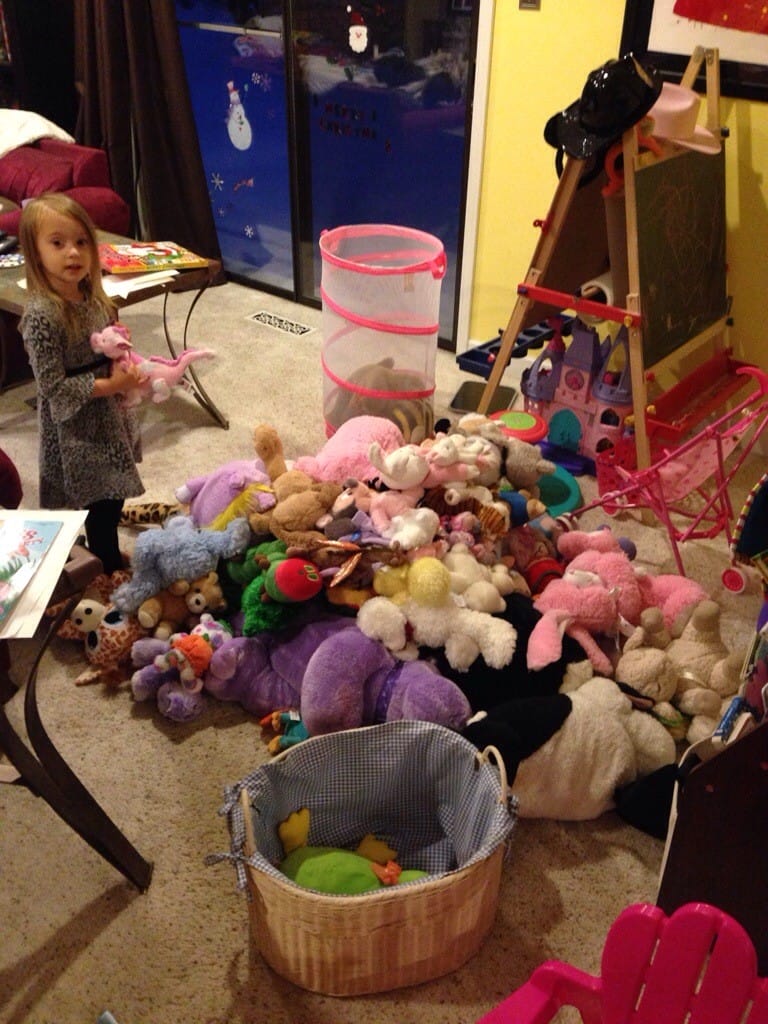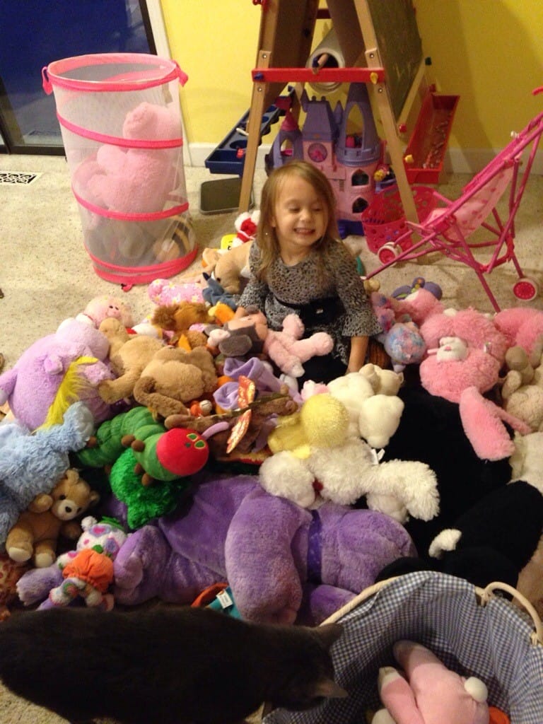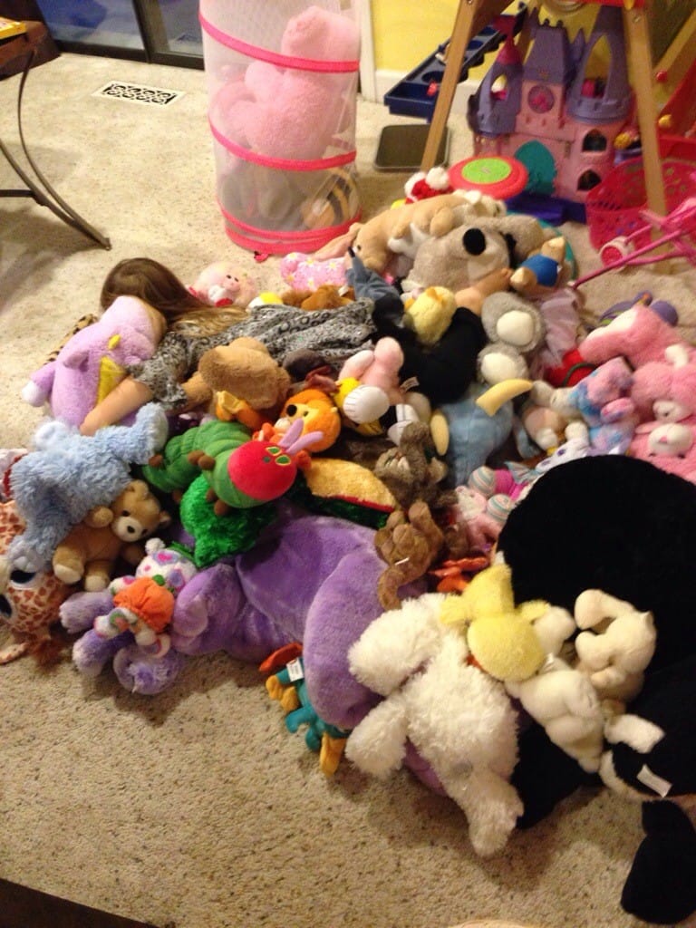 Mommy & daddy decided I have too many stuffed toys downstairs. So mommy made a pile & made me choose which ones stay downstairs, and which ones go upstairs. I completed my chore, and had fun while I was at it.