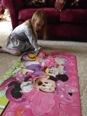 Daddy is helping me put together my new puzzle that my teachers got me. I’m starting to get the hang of it.