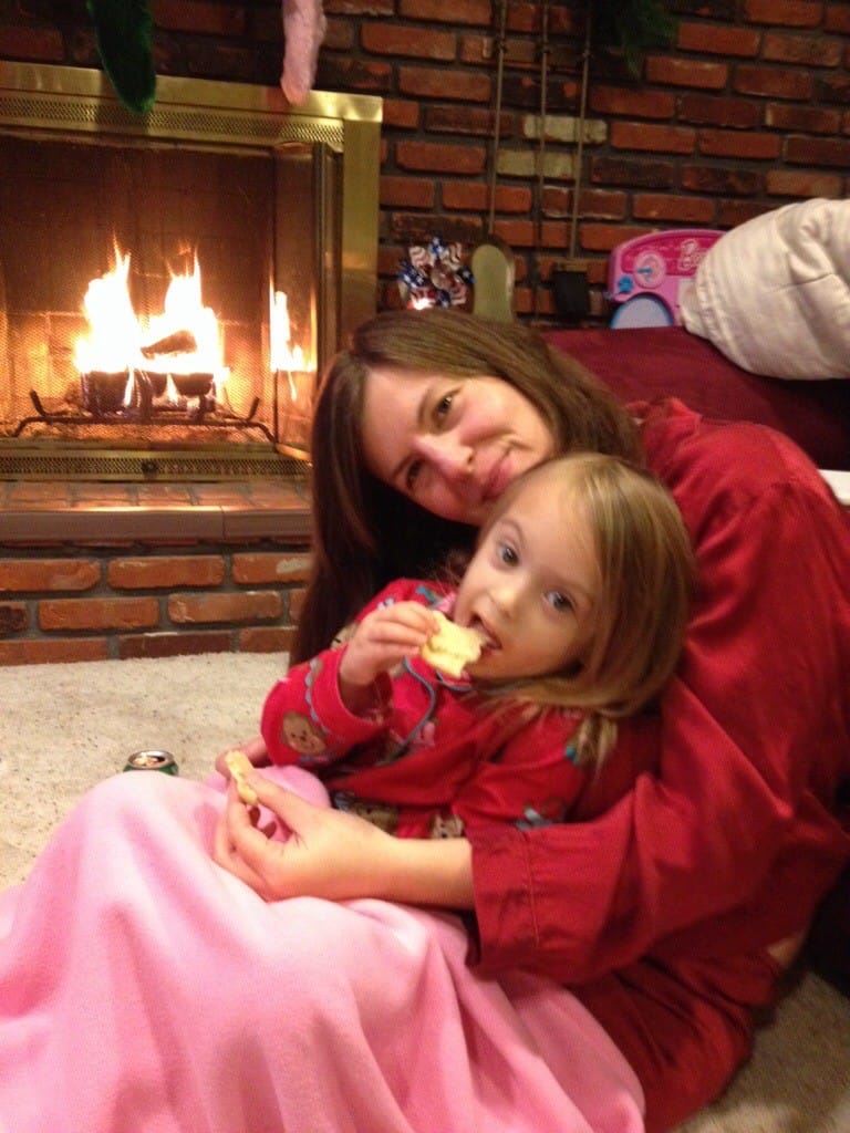 After a delightful carpet picnic I’m enjoying snuggles with mommy. And enjoying cookies by the fire.