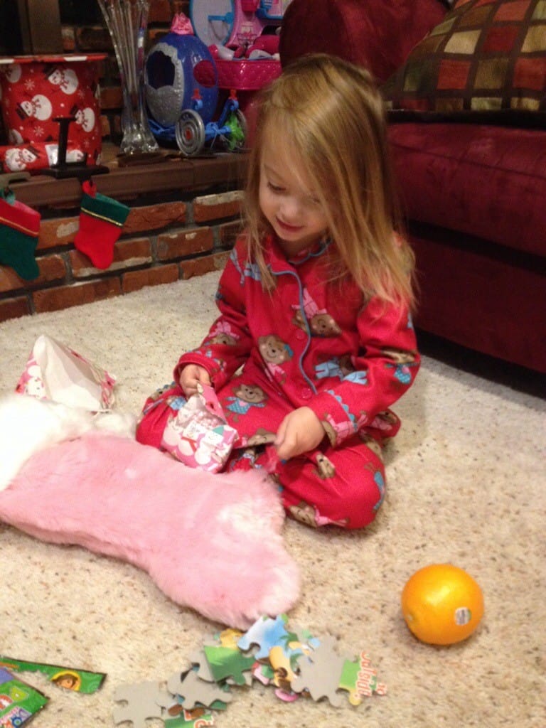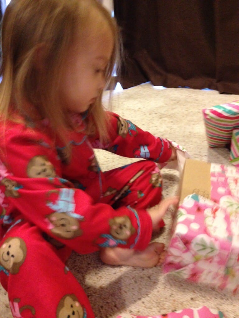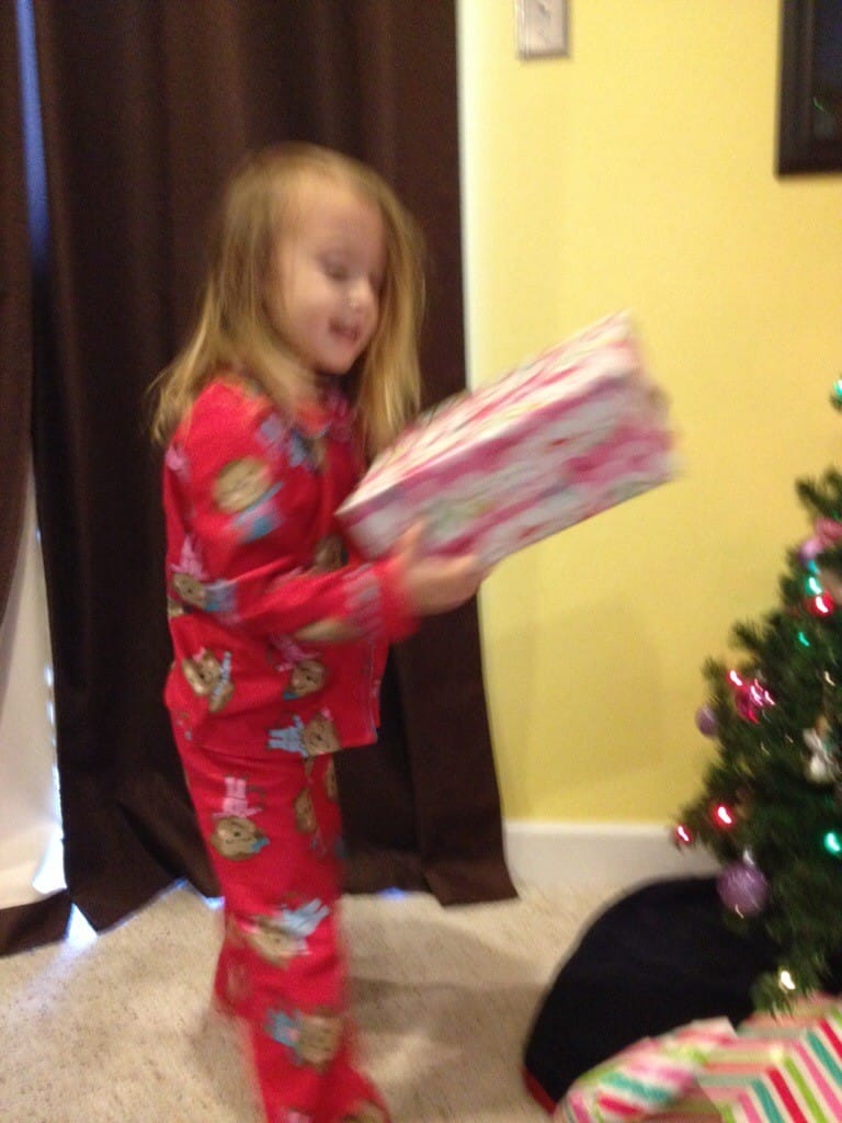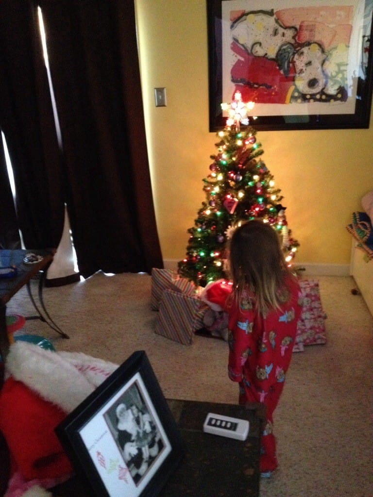 I ran downstairs and brought a card up for mom to read to me. Then we went downstairs together and I discovered Santa had set up my tree and left me gifts.