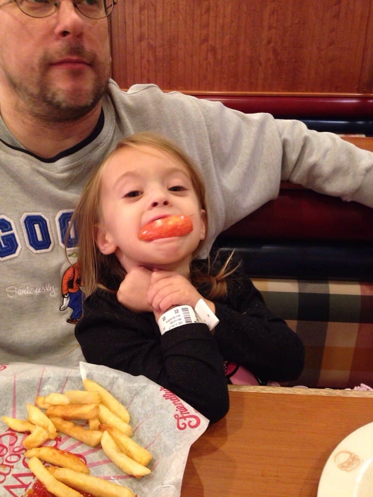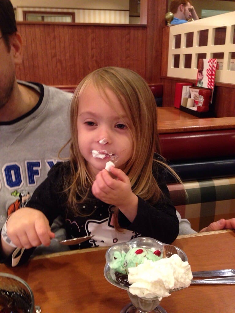Because of the unscheduled ER trip, and the fact that it happened just as mommy was starting dinner, we needed to make other dinner arrangements. Friendly’s, it is.