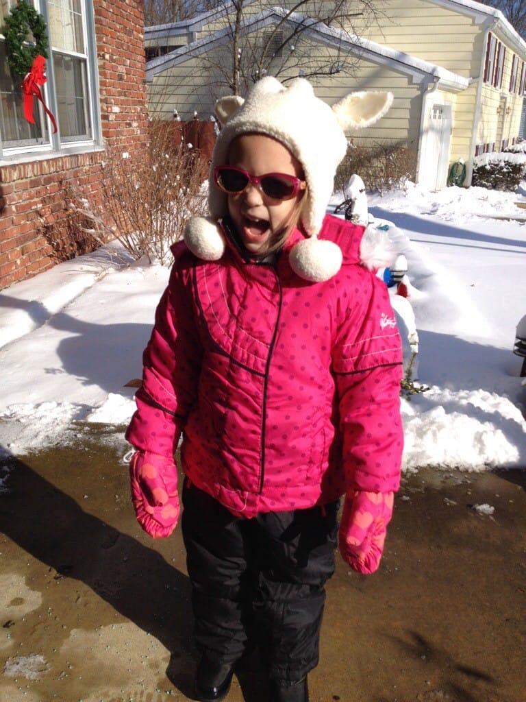 I’m all bundled up in the snowsuit grandmom and poppy gave me ready for some snowy fun.