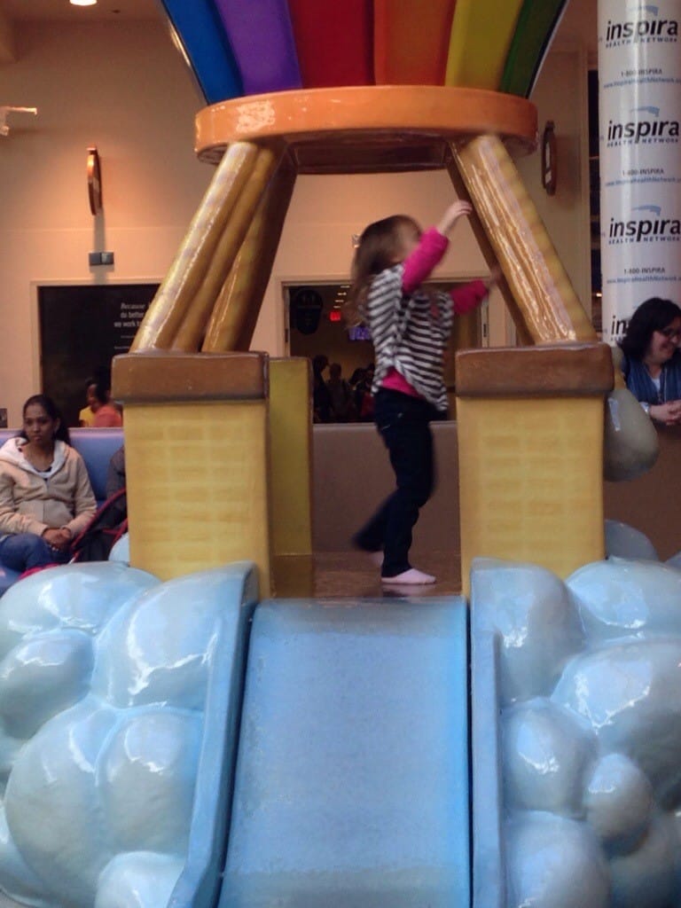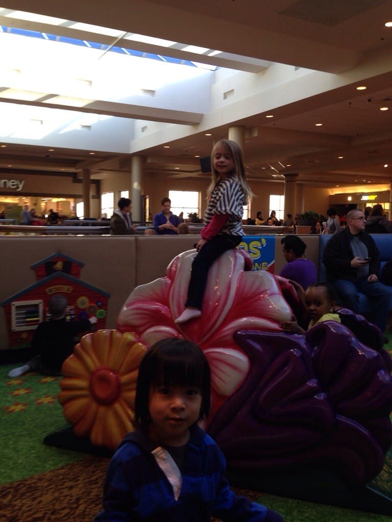 At the play zoneEven though it's technically spring, it's too cold for the park. So I talked mommy…