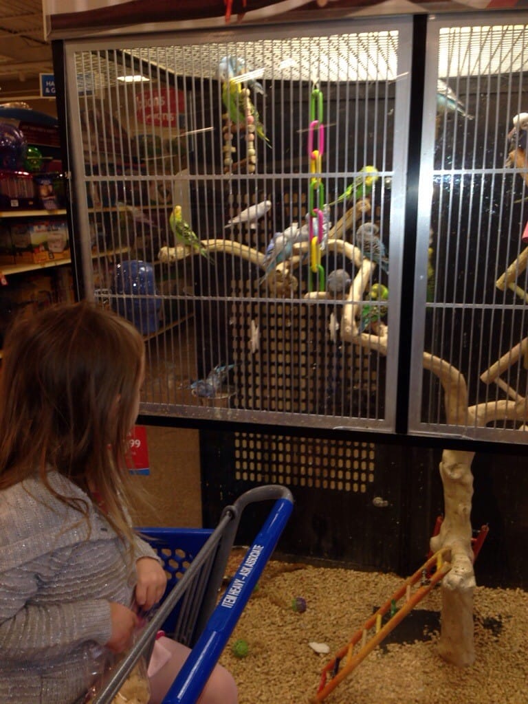 We’re at PETsMART again – and I found a grey parakeet with a pink mustache. Too bad I’m not allowed to get a bird.
