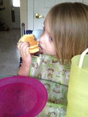 Yummy!!! (After I made mommy pick off all the sesame seeds of course…)