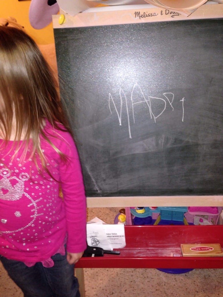 Mommy wanted me to write my name on the chalkboard so she could send a picture to my Grammy.