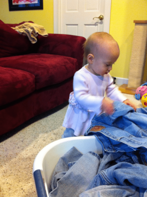 Happiness is...A laundry basket full of clean clothes.I like throwing the clothes all around the room!