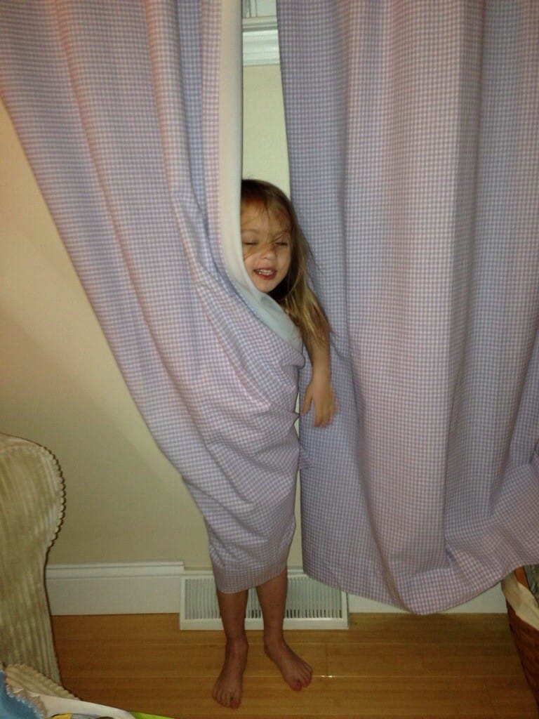 Yes, I’m hiding behind my curtains… But I’m not naked, mommy!