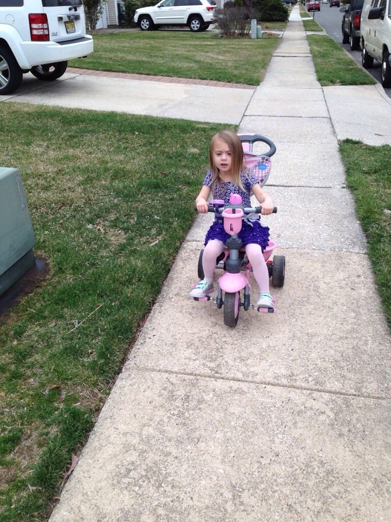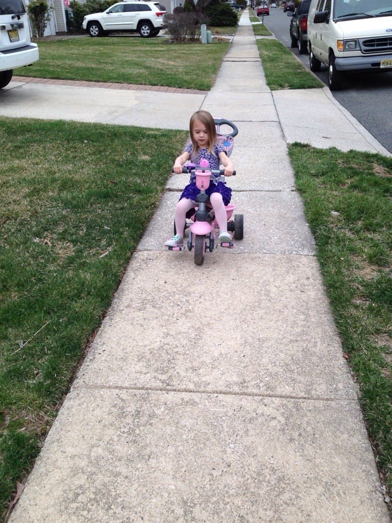 I changed into my “Twinkle Toes” and went for a ride on my trike. I rode all the way from our house to daddy’s office – that’s over a mile!