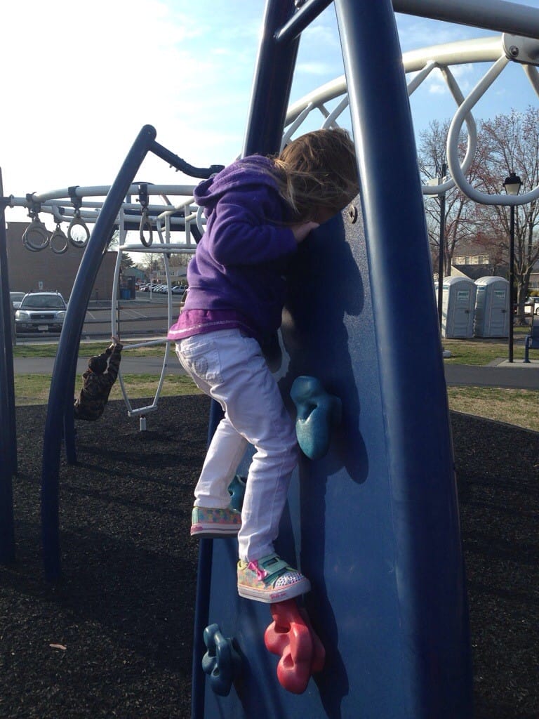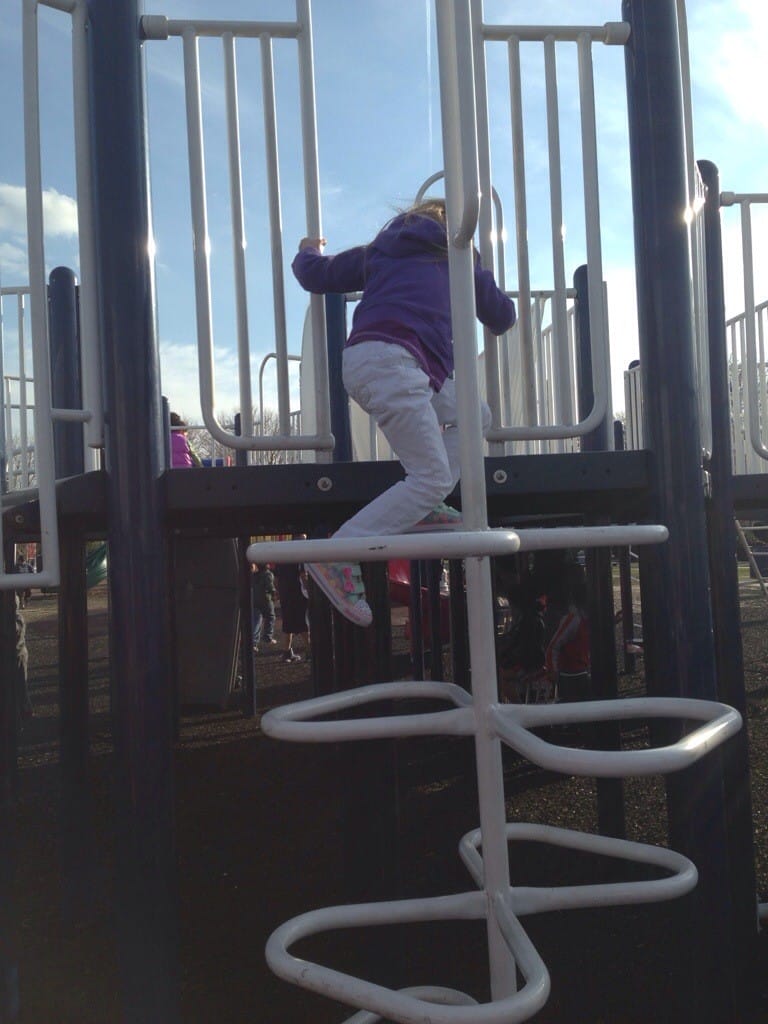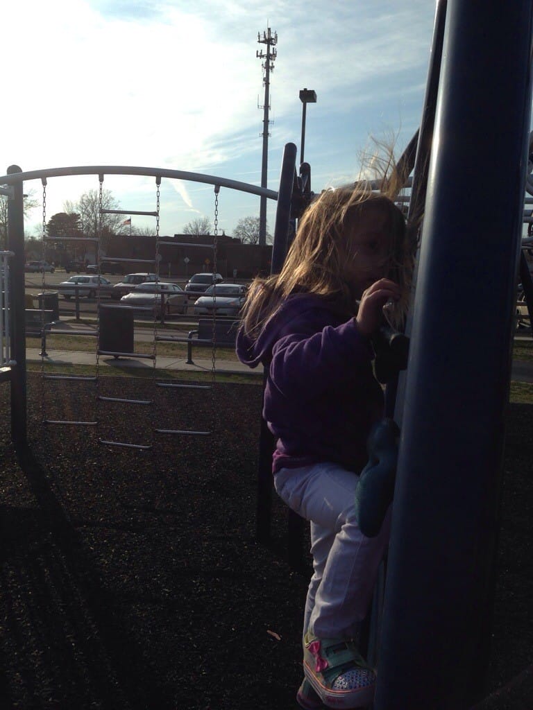I rode my trike all the way to the park, then I climbed and climbed and climbed. Then mommy and I had to keep running away from the dinosaurs (coffeesaurus and macaronisaurus).