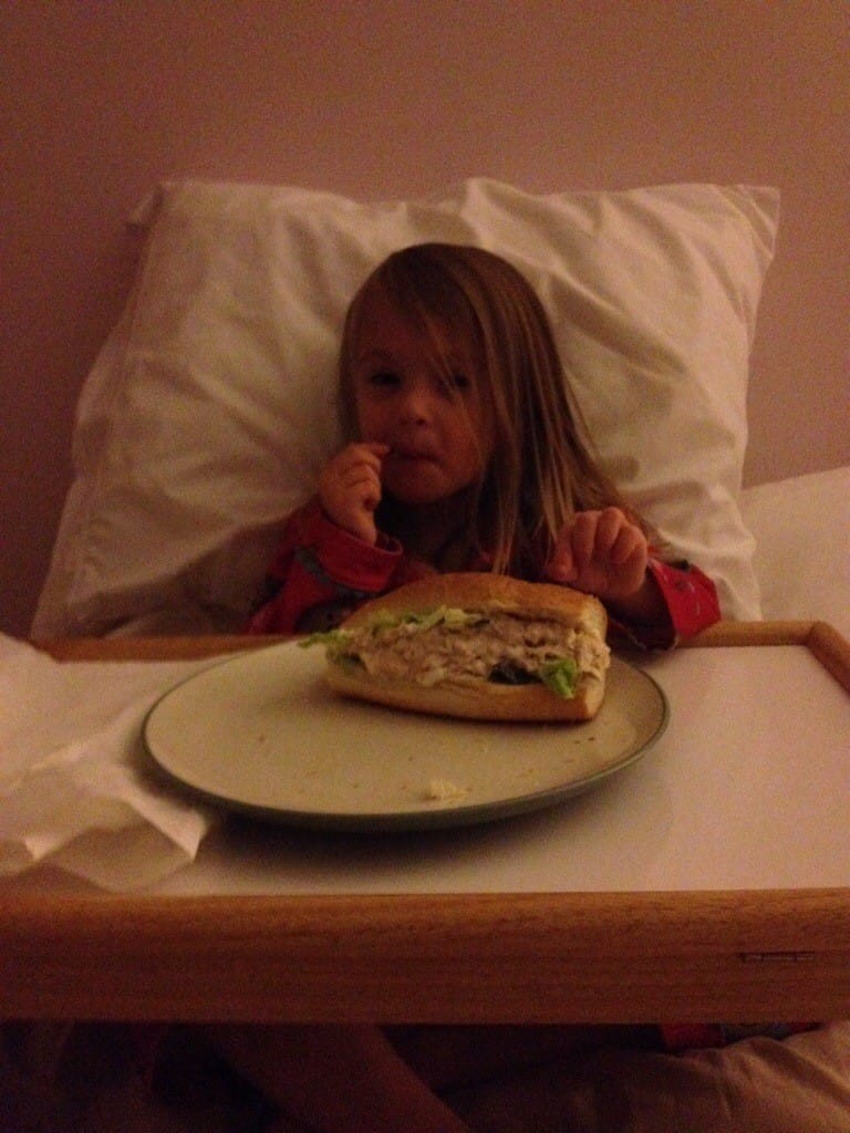 Daddy made mommy his special tuna hoagie and I tried it and liked it. So I asked for my own.