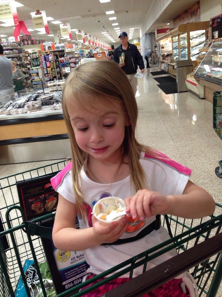 Mommy was at the deli in ShopRite, and I saw some white stuff with oranges in it that looked yummy. The deli guy was nice, and let me sample it.