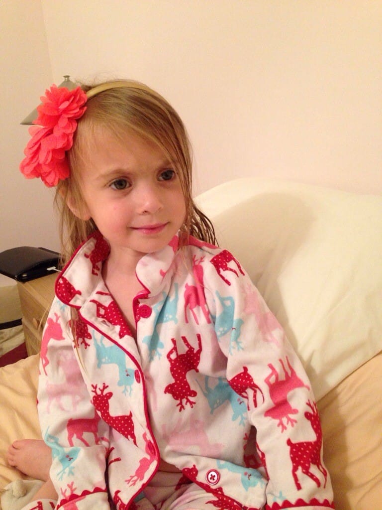I’m bathed, had my breathing treatment, and my teeth are brushed. I even put on a fancy headband for the occasion. Let’s get this show on the road.