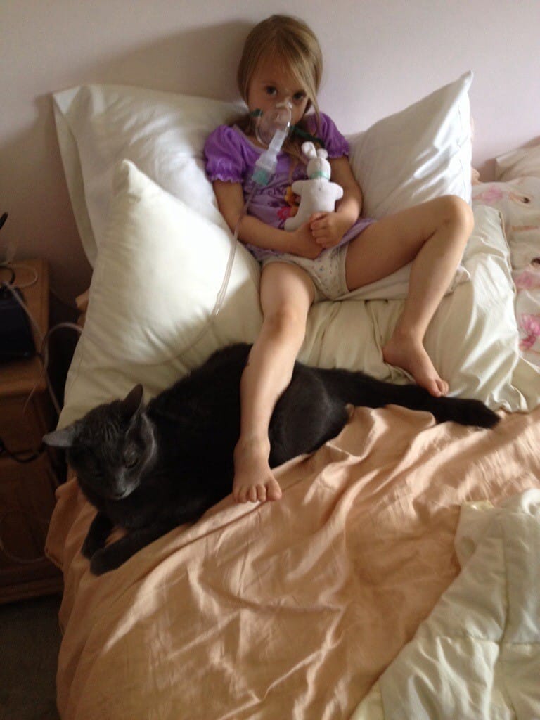 I was getting my breathing treatment and Charlie and Sammy came to visit me.