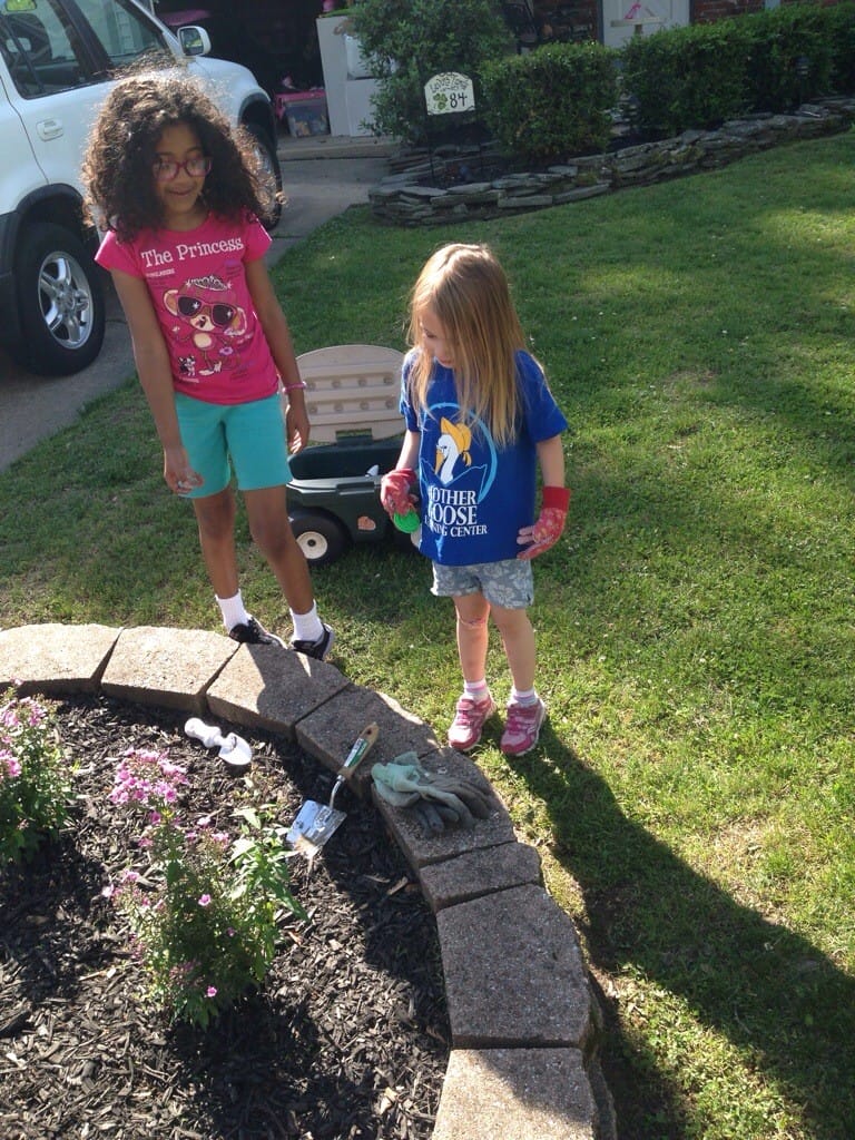 The flowers mommy & daddy planted to attract butterflies seemed to be working. Nani & I were watching a little butterfly (maybe a moth?) flutter around the flowers.