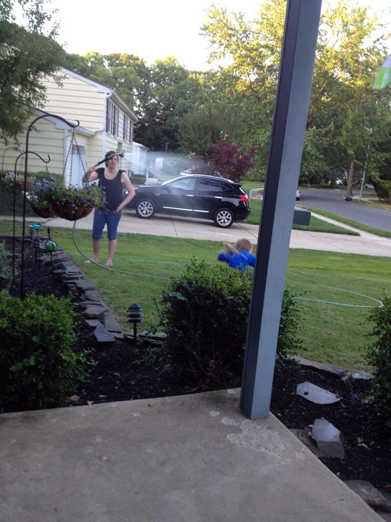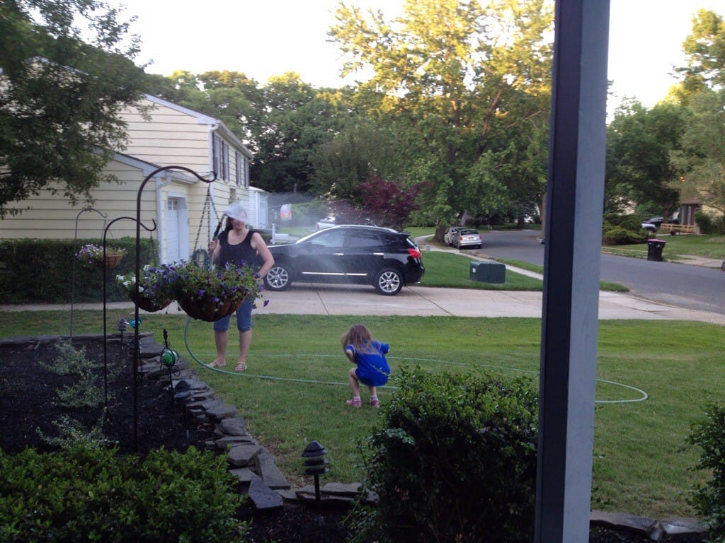 Mommy was watering the plants. But I wanted her to spray me. So we played a bit.