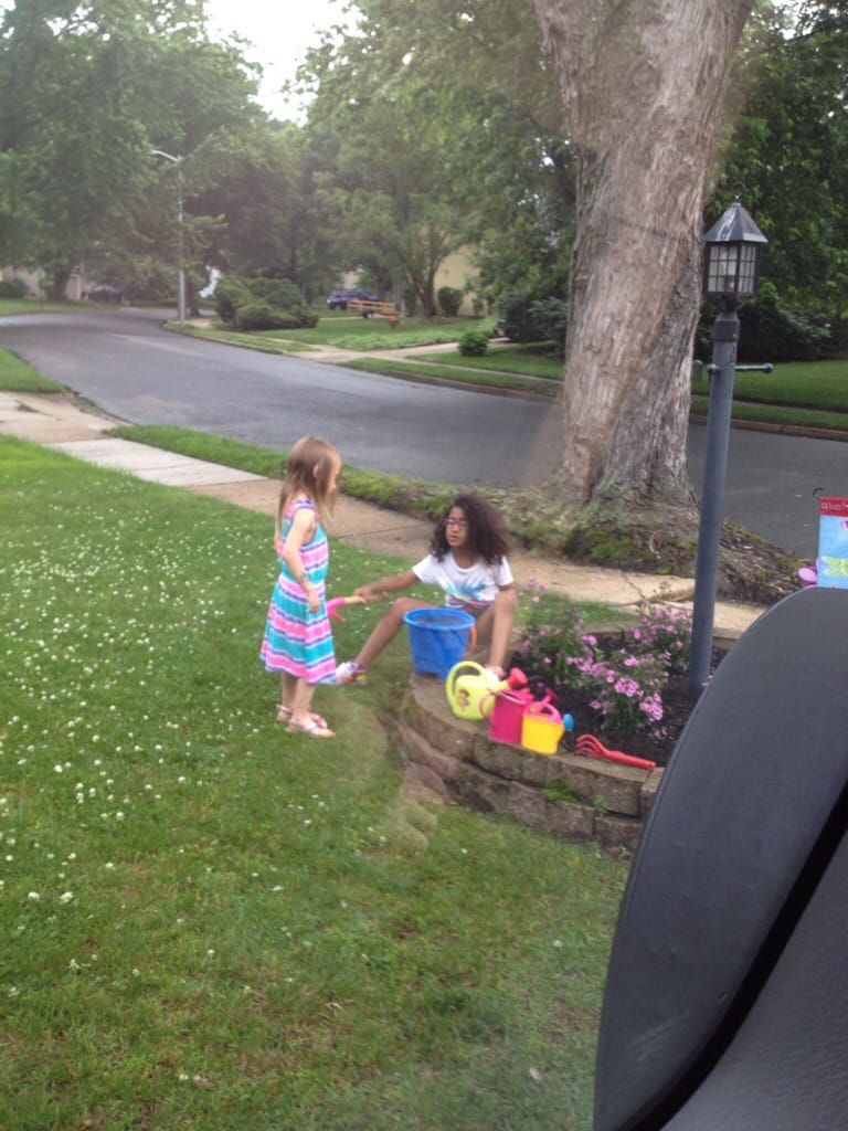 We’re making mud pies and potions.