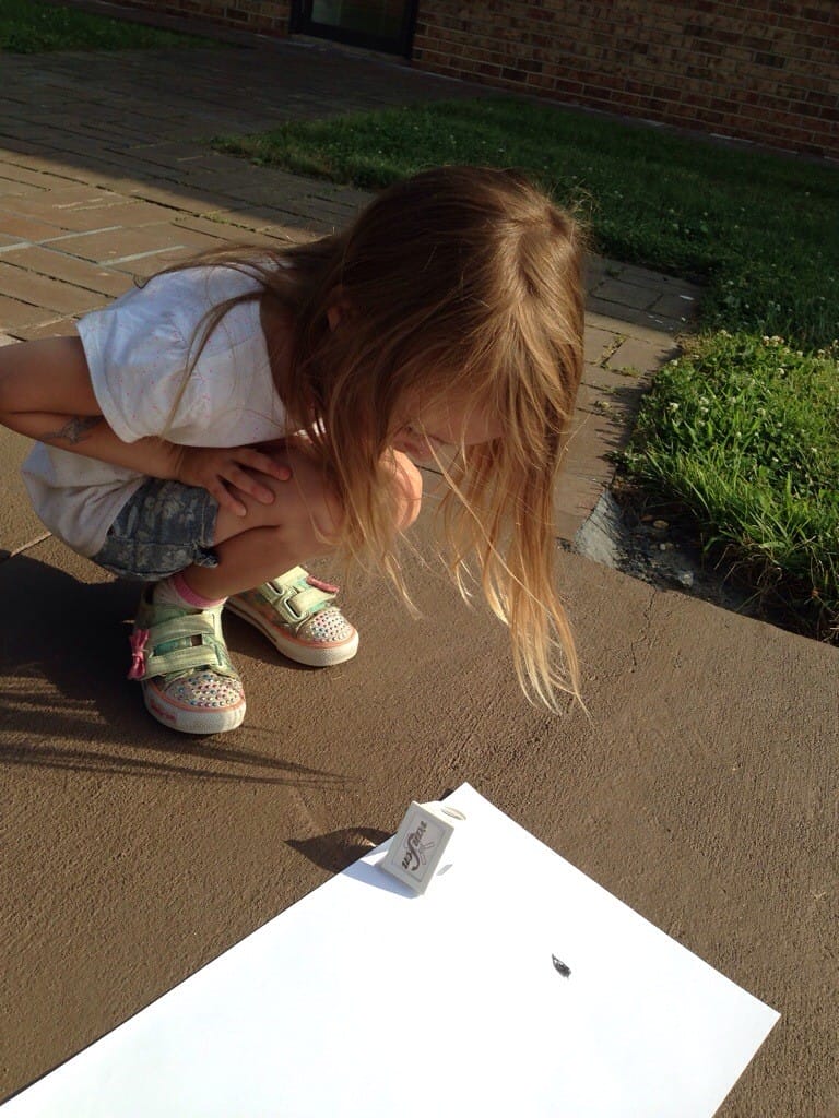 I brought a loupe from daddy’s office outside to try to get the sun to burn a piece of paper. It didn’t work though.