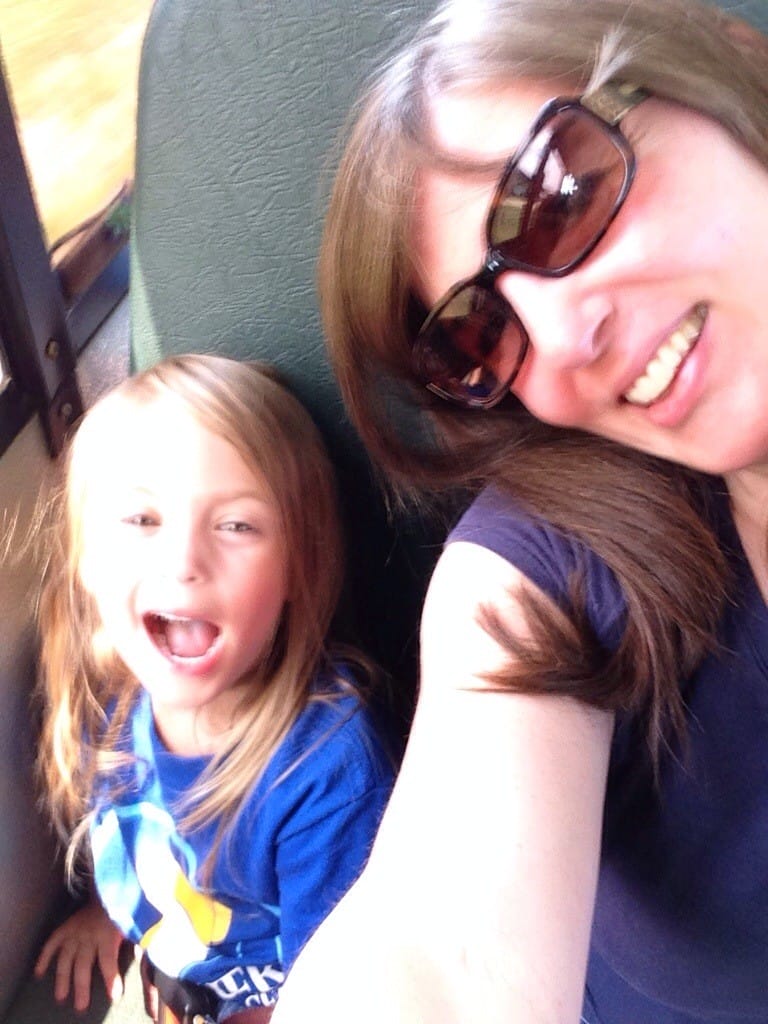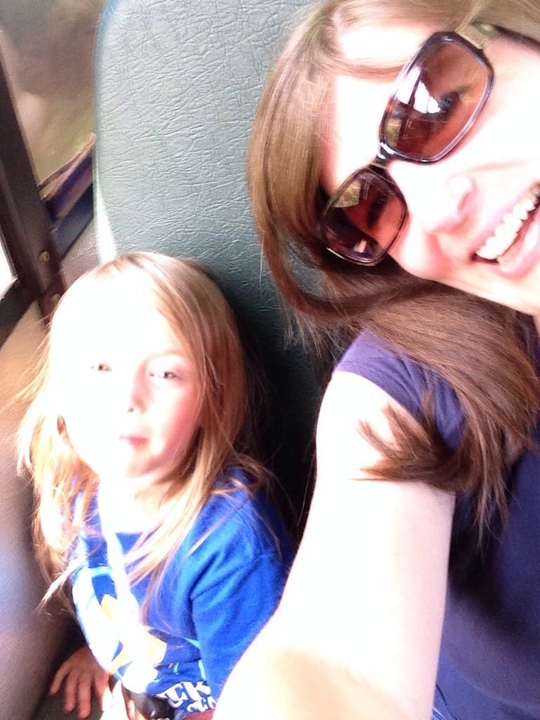 Our field trip is over, and mommy and I are taking selfies on the bus ride home.