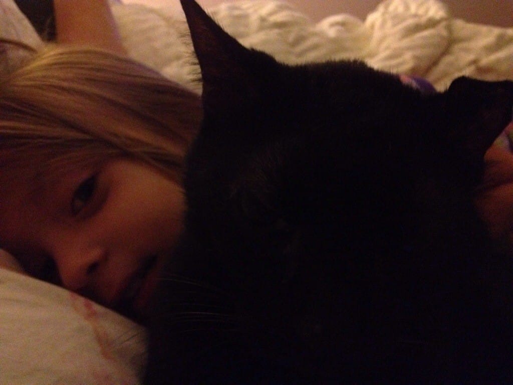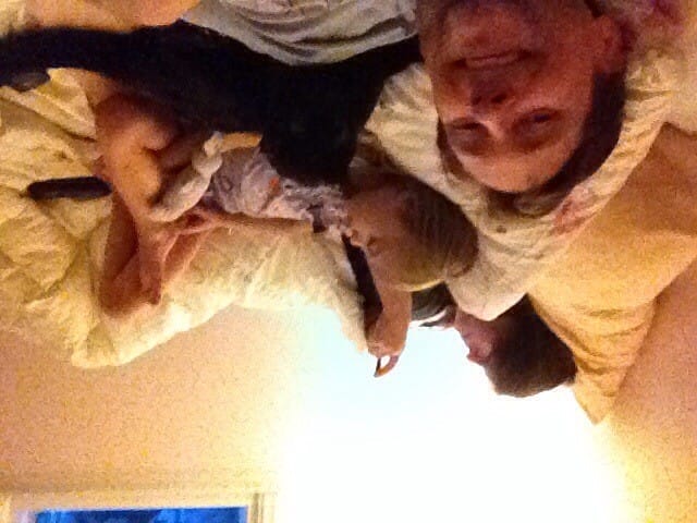 I’ve got a tummy ache. But sitting with mommy and Sammy is making me feel better.