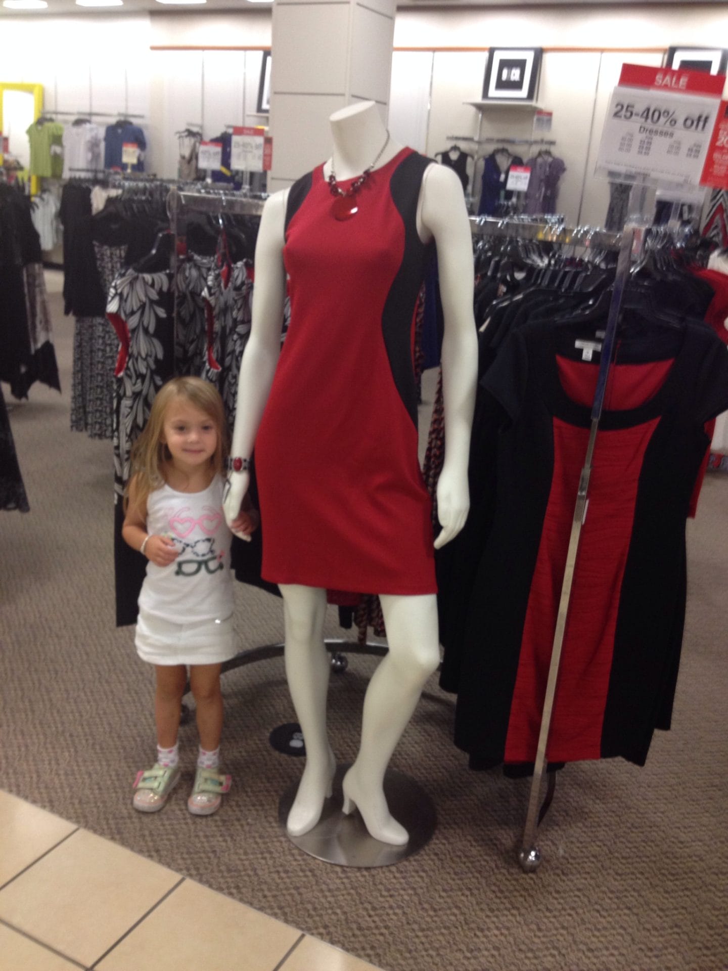 As we were walking through the mall I saw a pretty dress on a headless mannequin and I wanted my picture taken.