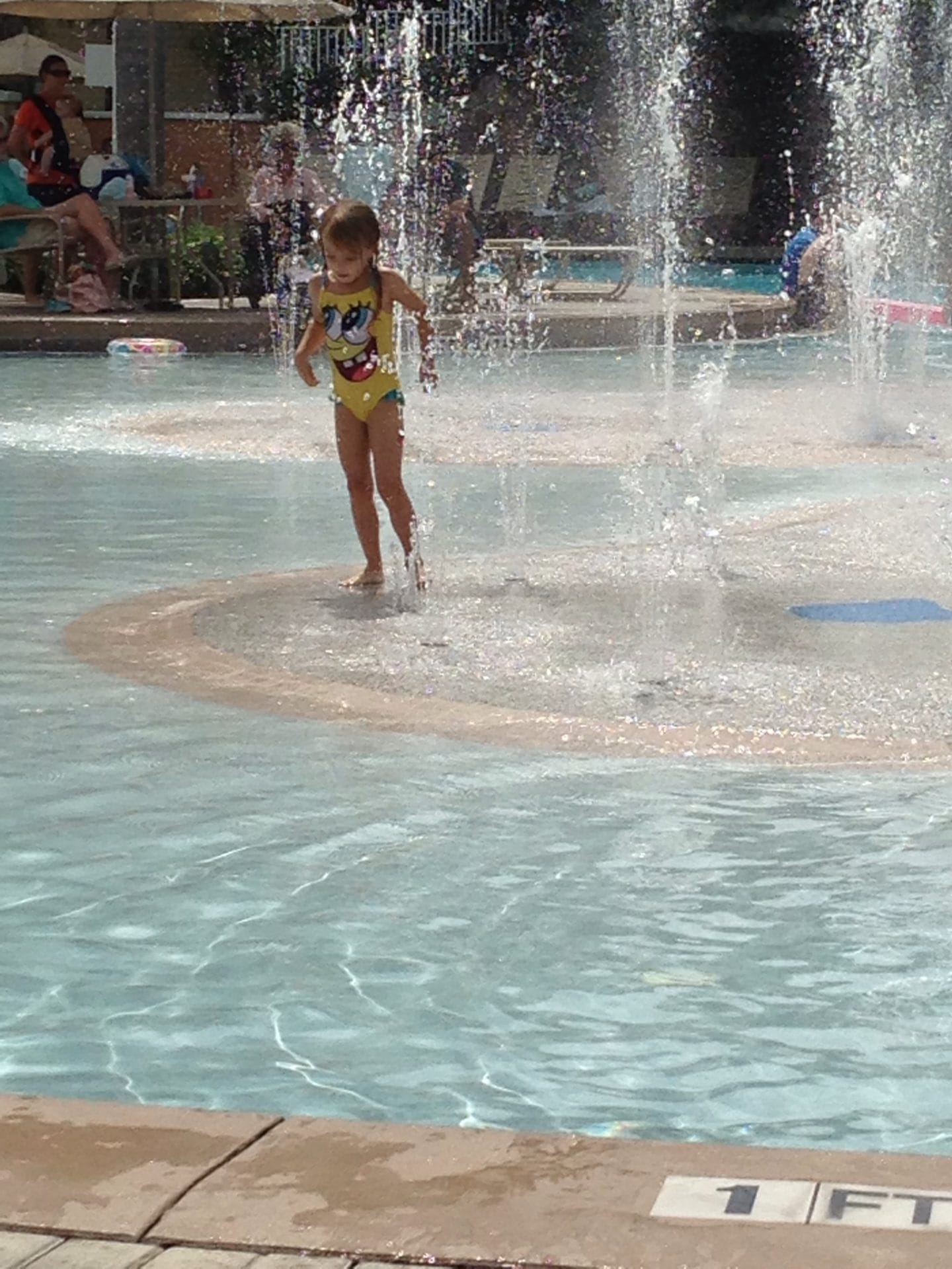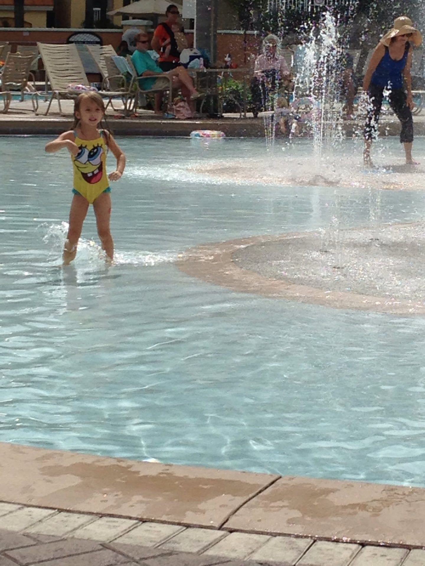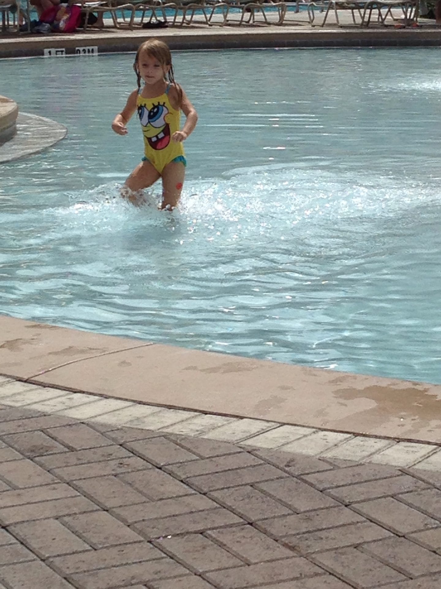 It’s not very sunny, and the water’s not very warm. But we’re on vacation – and that means playing in the pool.