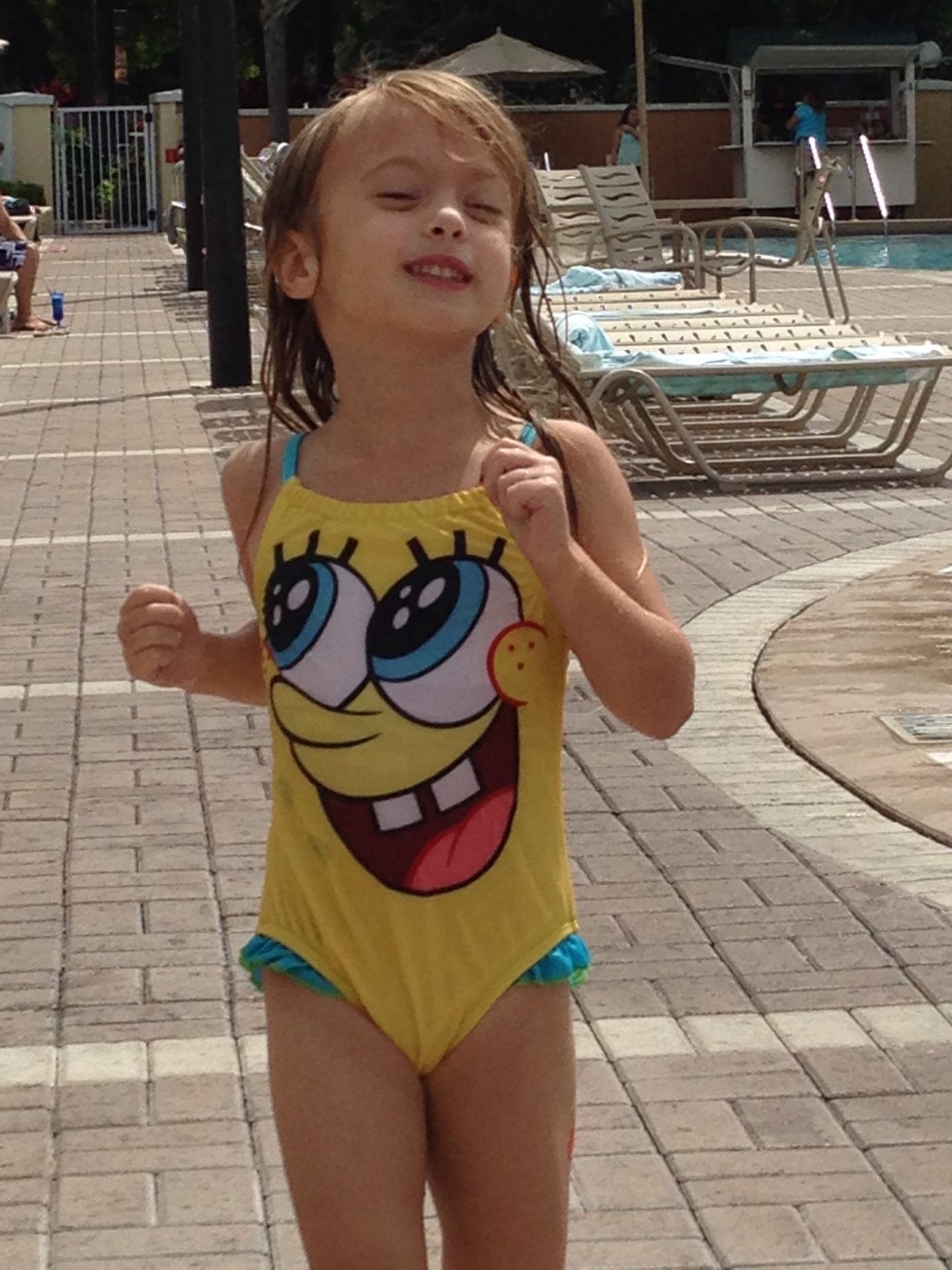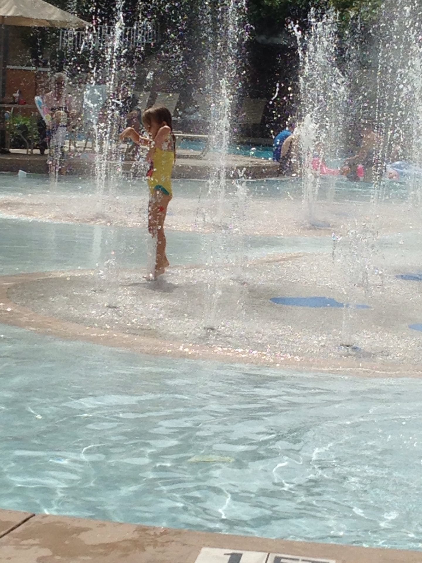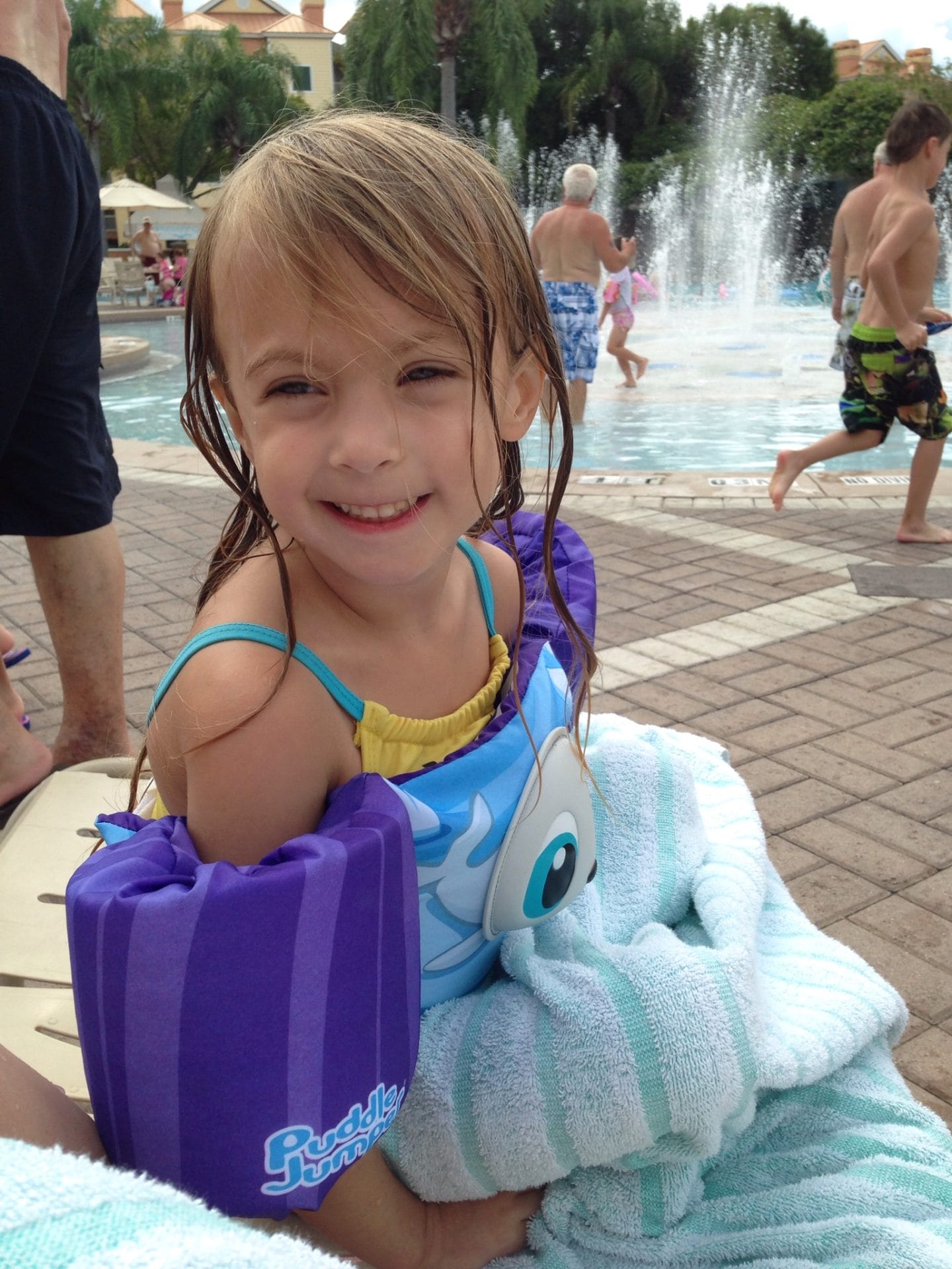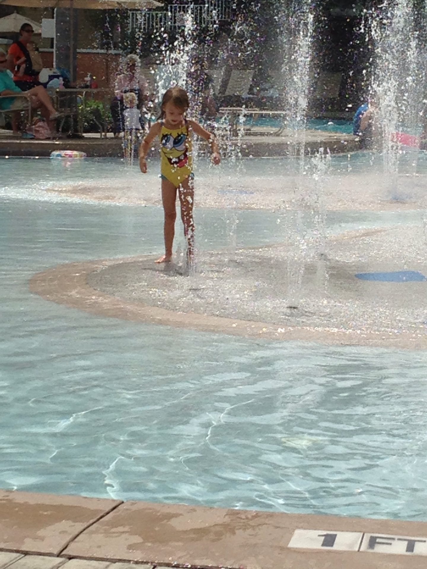 It’s not very sunny, and the water’s not very warm. But we’re on vacation – and that means playing in the pool.