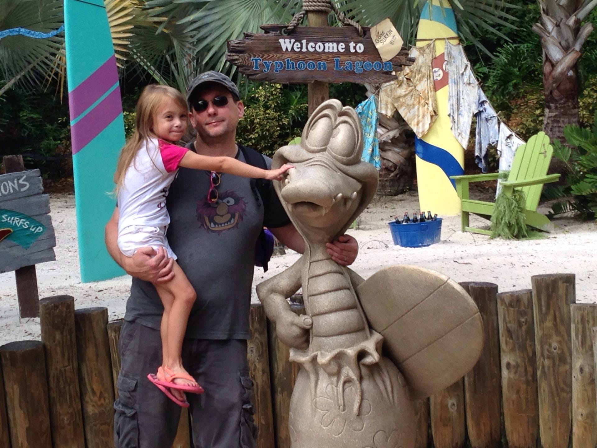 The last part of our 2014 Disney adventure was a visit to the Typhoon Lagoon water park. Mom & dad had to stow their phones in a locker so they would stay dry, so there aren’t any pictures of us frolicking. But we rode rafts through the lazy river around the park, spent some time in the wave pool, and played in the “kiddie” area – where there was a really cool ride where I sat in an inner tube & went around a small river with little “Rapids” and everything.