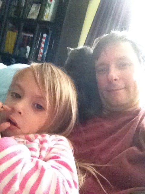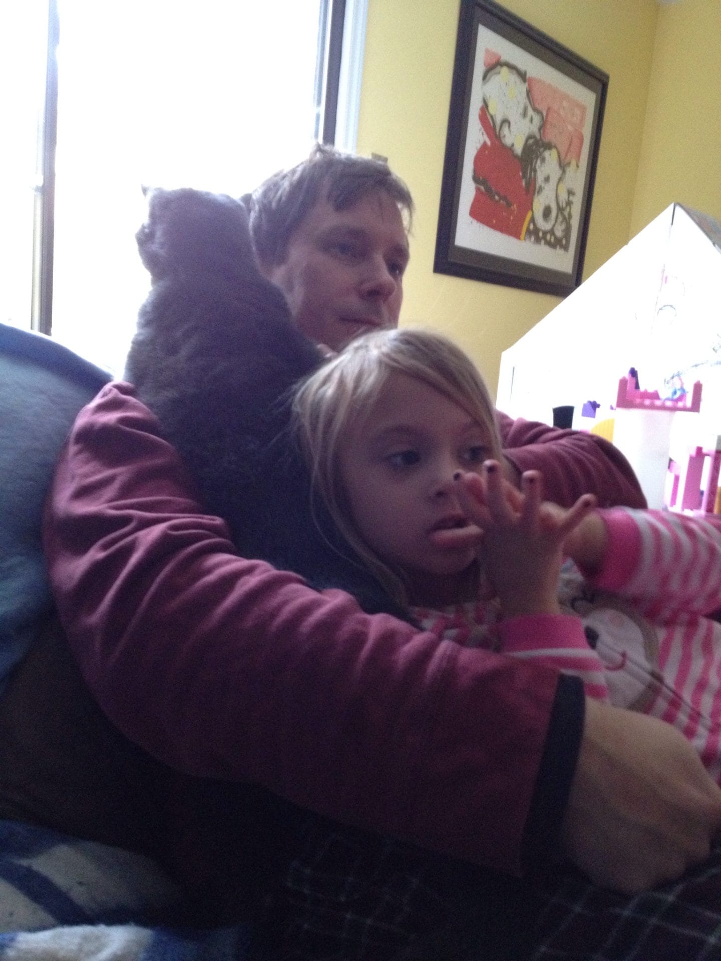 Daddy's reading to me about the "Elf on the Shelf." Everybody else in the room…
