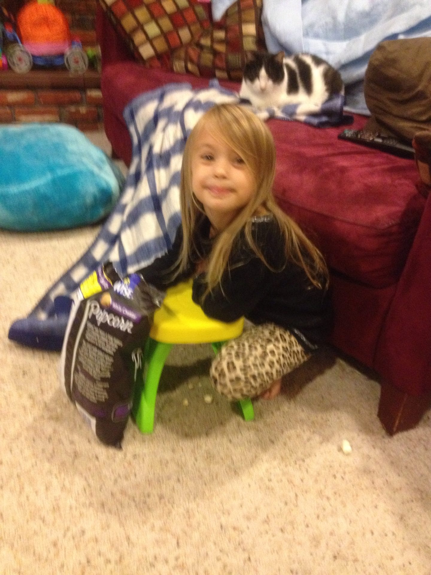 Daddy was away for a meeting today. But he brought me white cheddar popcorn, so he’s forgiven.