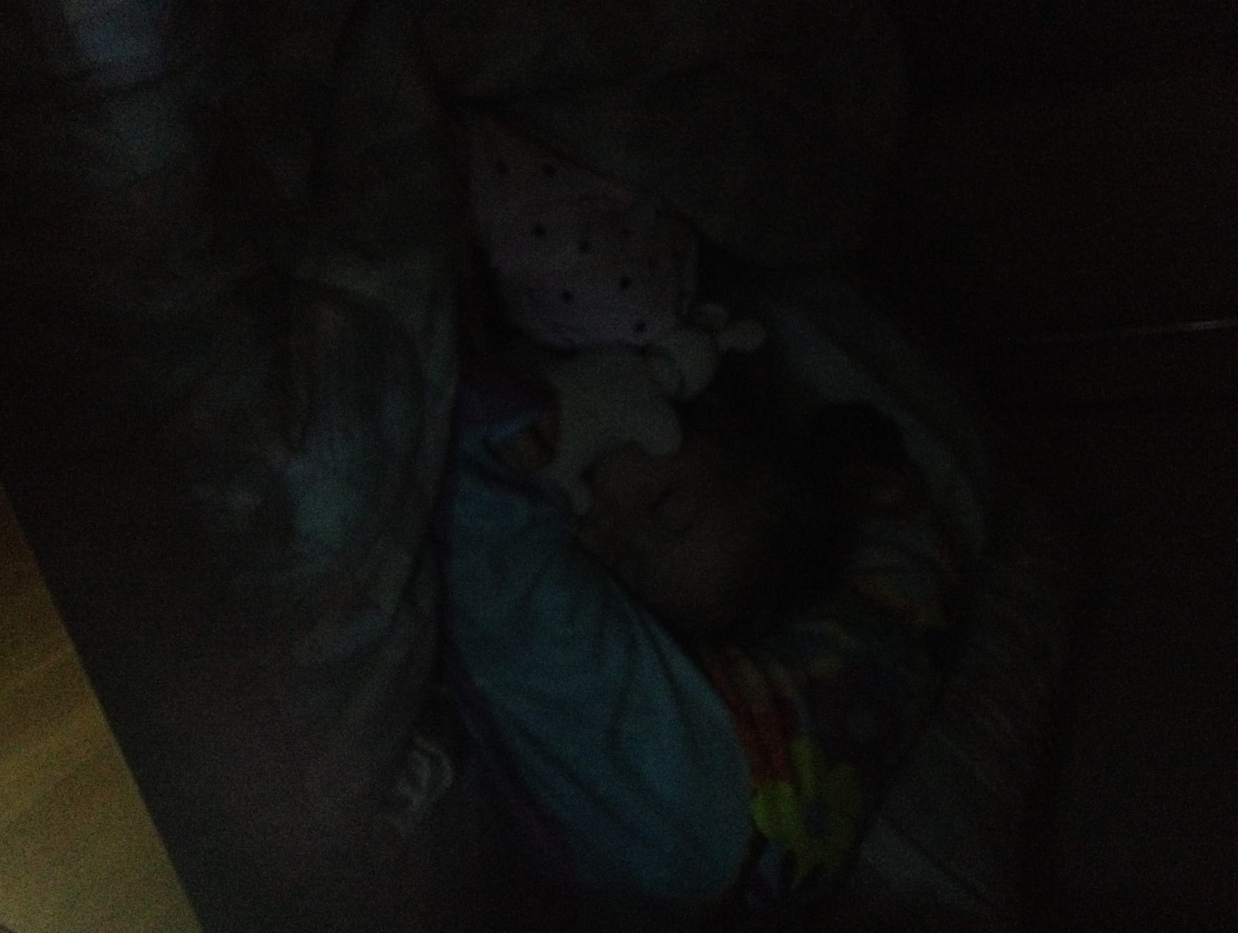 I simply did not want to fall asleep tonight. I lay awake serenading mommy from my bedroom. And when dad came up to work down the hall in the office… I chatted with him until he brought me down to sleep in the office. And even then I talked with him until 10:30pm.