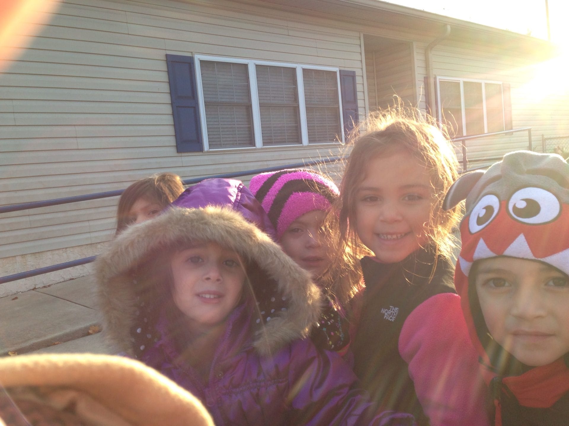 When mommy came to pick me up, I was playing outside with my friends. I was really upset because I wanted to ride a blue trike & they were all taken. My friends were having fun though!