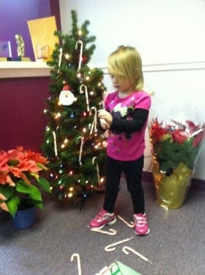 DecoratingDaddy's office tree was a little "naked," so mommy & I got some candy canes,…