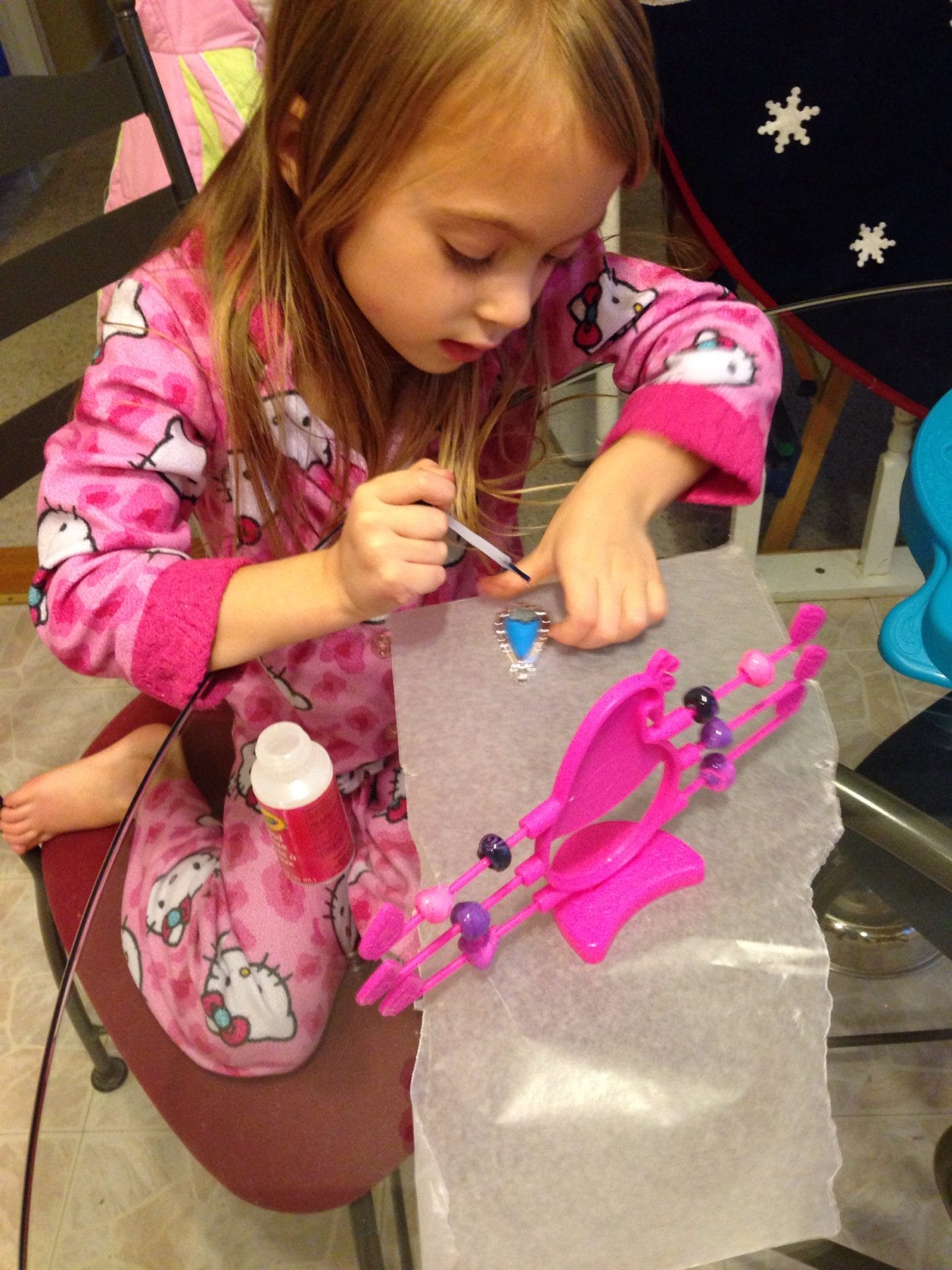 I got a cool jewelry-making kit from Aunt Pat & Uncle Jim. I’m glazing the bead for my necklace.
