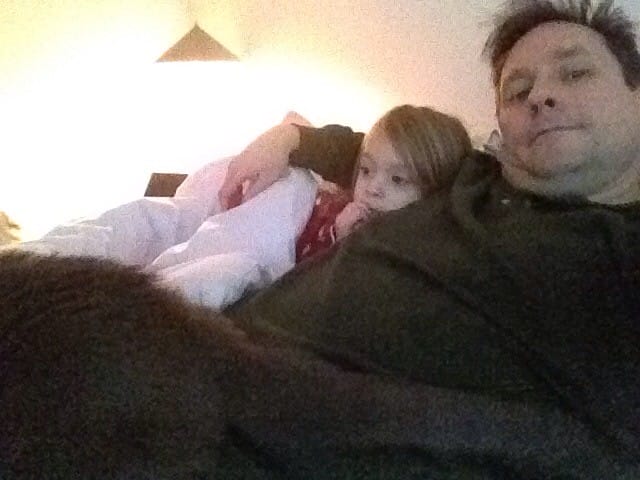 Daddy is trying to work but Charlie and I demanded snuggles. We won.