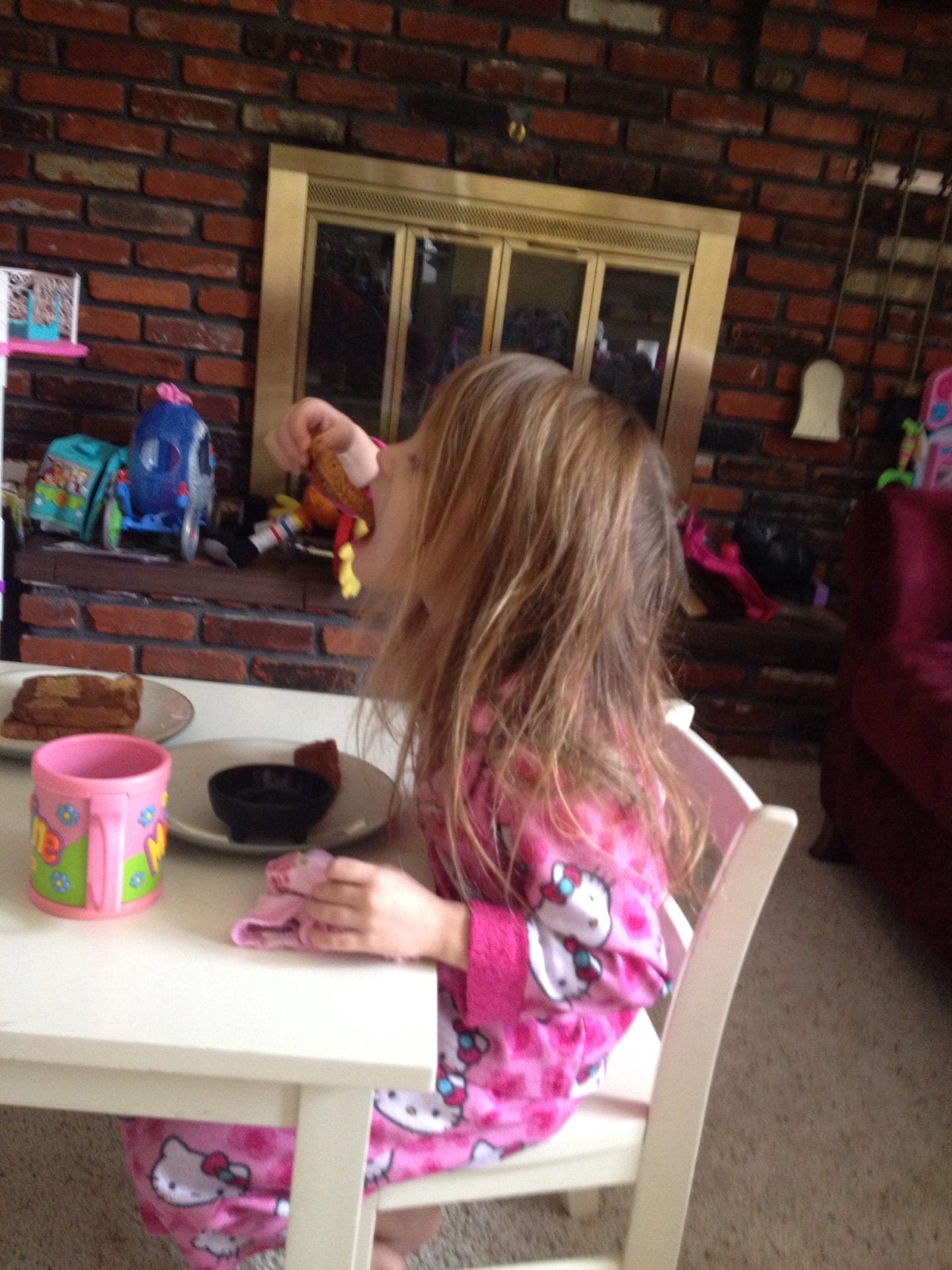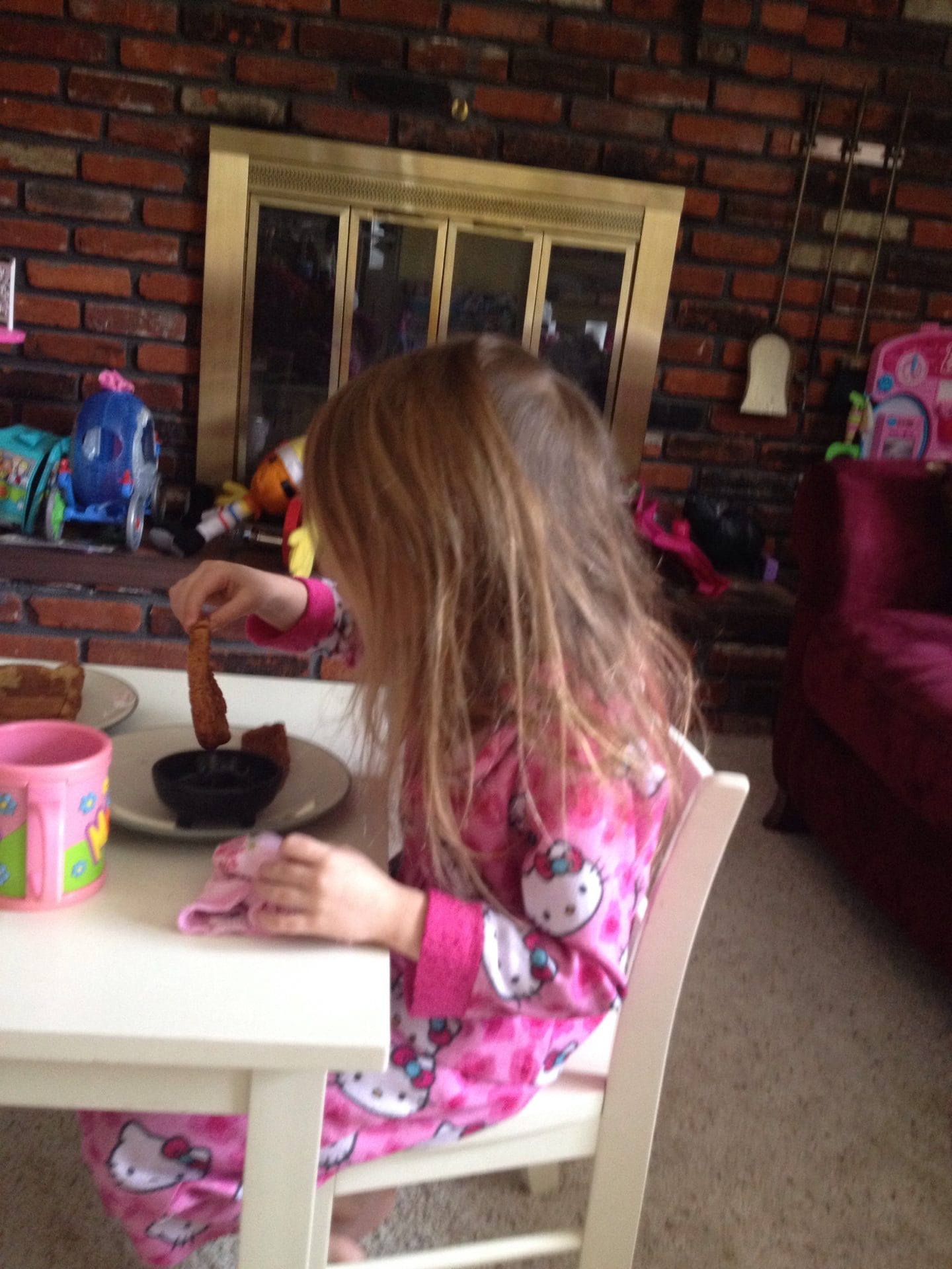 Yummy. Dad made me French toast sticks. Even though I put my order in late.